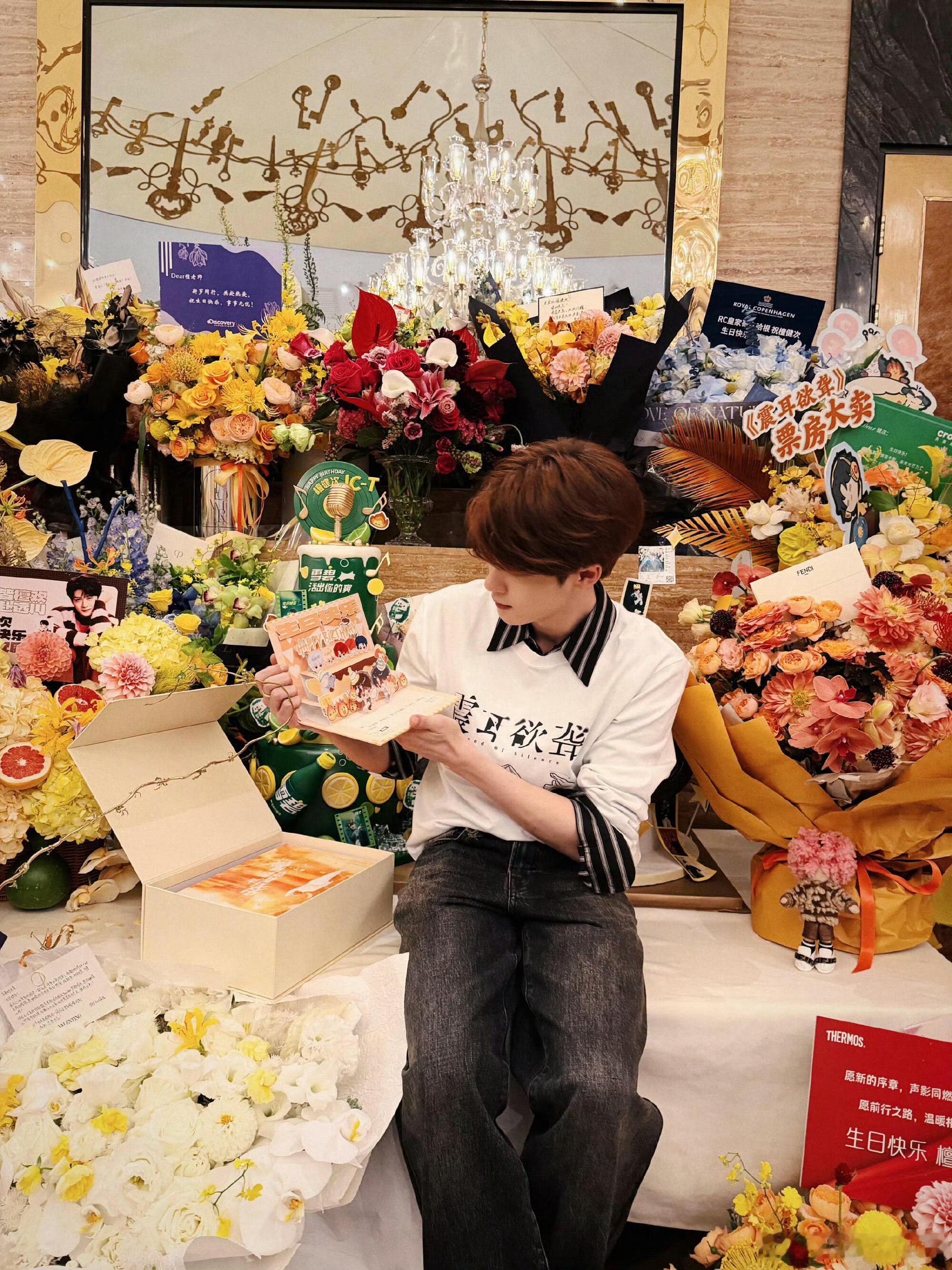 檀健次震耳欲聋生日照檀健次震耳欲聋片场照 电影《震耳欲聋》上映次日恰逢檀健次生日,现场花团锦簇,他穿主题卫衣,与影迷共度温馨时刻,笑容真挚,氛围治愈又温暖。