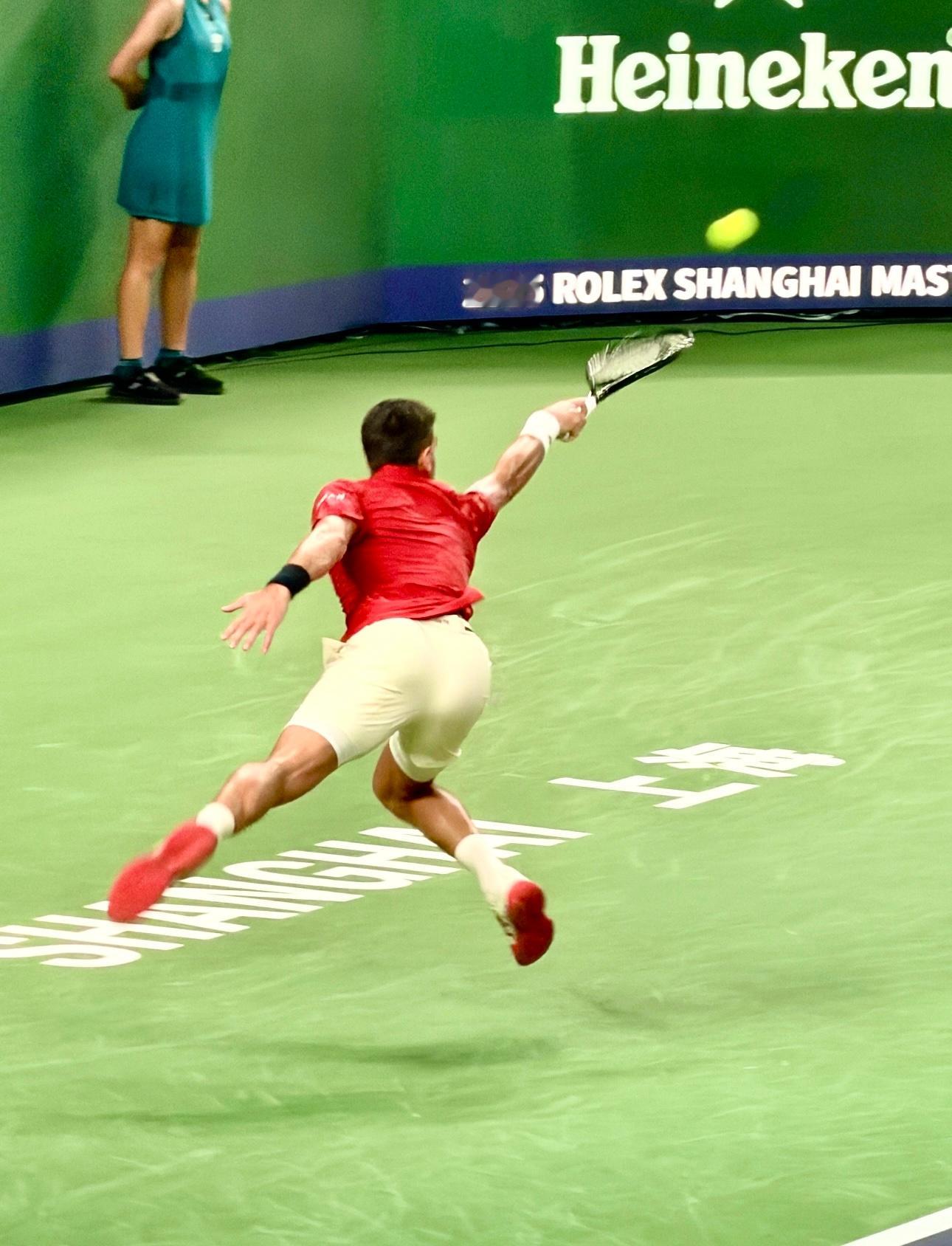在阿卡没来,辛纳退赛,海报中C位的那个老家伙却果然站了起来。尽管他身上的汗液也如同刚刚从泳池里爬出来,但以近虚脱的德约还是三盘过了关。今天,上海的温度还会再上升两、三度,那对即将出战的小商而言又是一次致命的考验。