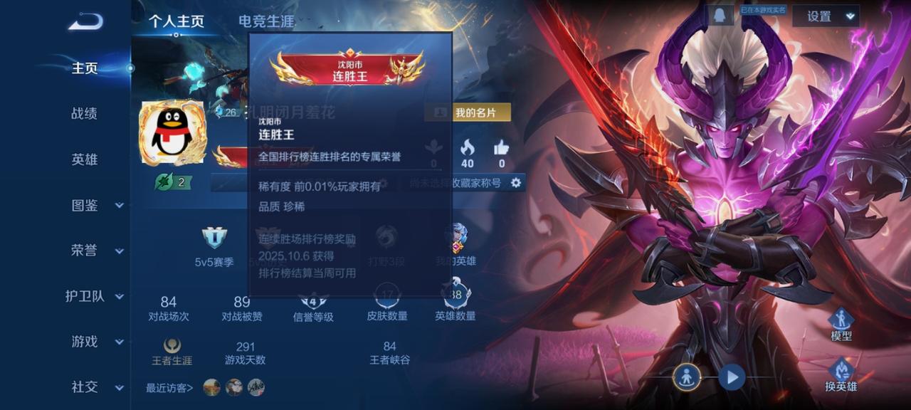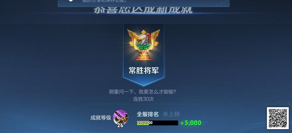 这几天看到王者的活动,忍不住又登录了很久不玩的一个号。 没想到运气还不错[强],居然断断续续连赢了二十八场。 再加上以前的两场,刚好达成了三十连胜的,常胜将军成就。 系统还送了个稀有称号,好像只有一周时间。 不过[叹气]赢多了肯定会被坑,今天早上已经感觉到机制开始发力了。 打个人机都直接被坑输了。 而且排位这边刚好还到了晋级赛,种种迹象表明,下一把[打call]排位就要轮到,传说中的必输局了。 有没有人不信邪,想跟我一起挑战一下必输局的,来个绝地翻盘[碰拳]