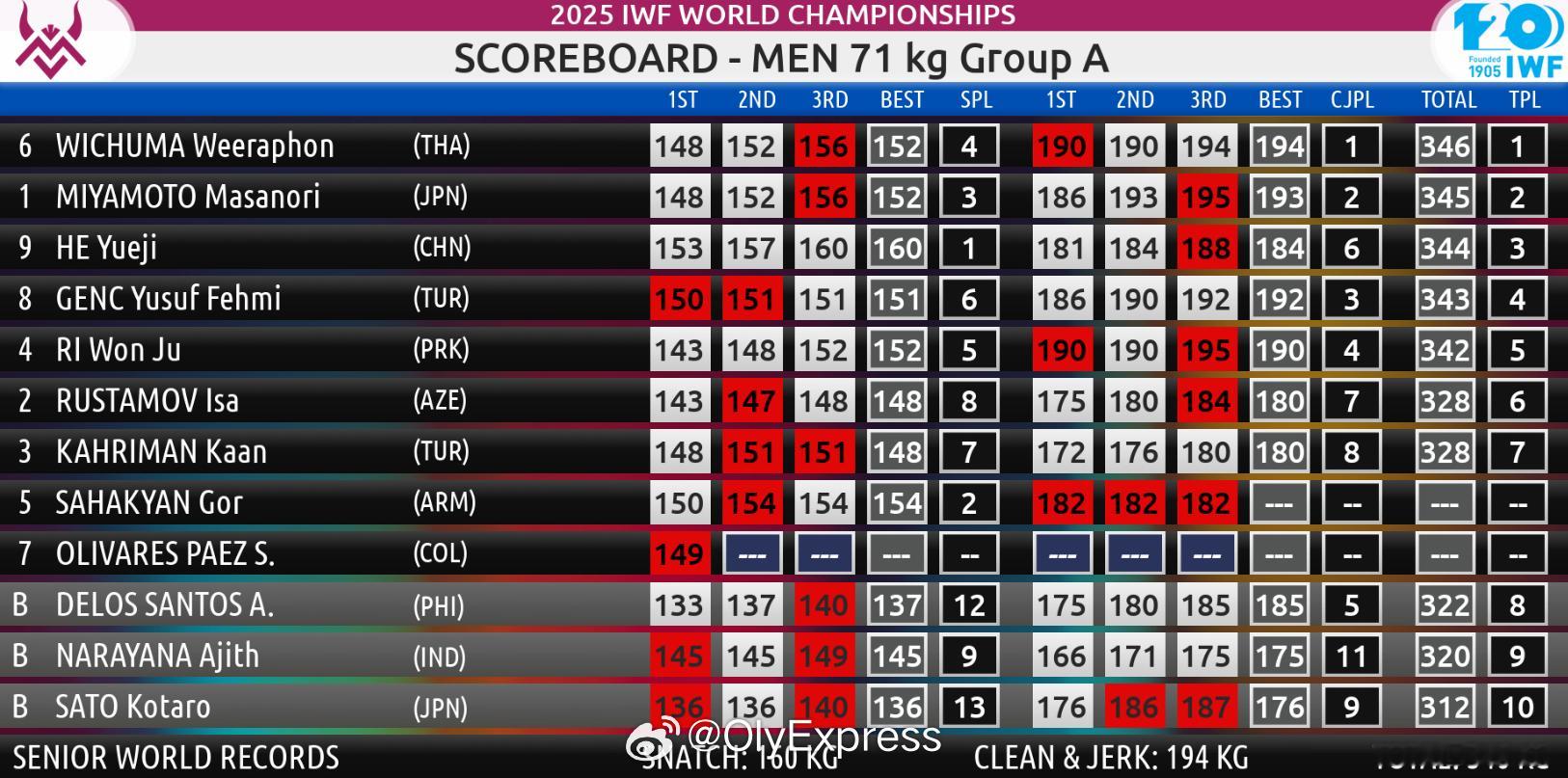 【举重世锦赛何岳基破世界纪录夺1金1铜】国际体坛战报速递10月5日挪威福德,举