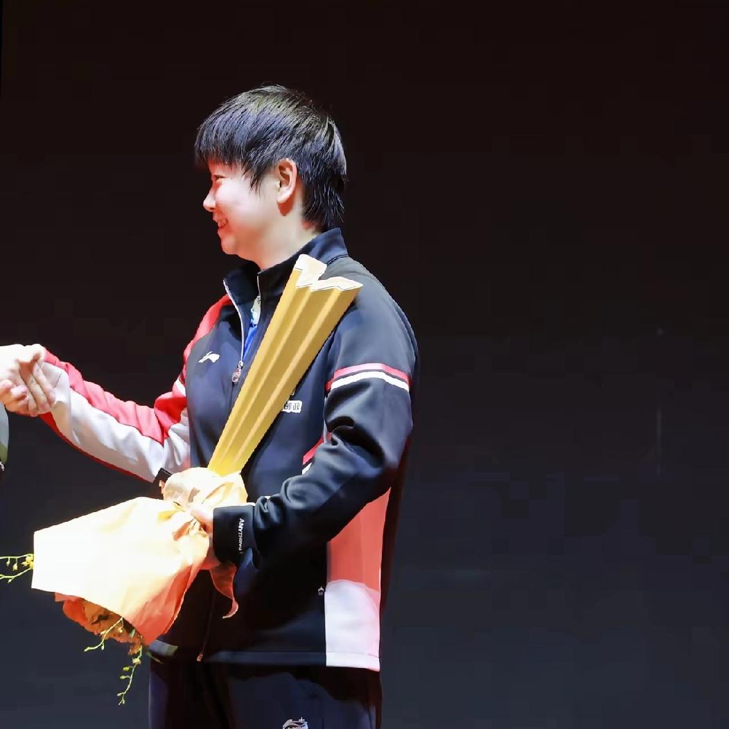 中国大满贯赛女单冠军颁奖典礼,王励勤展示高情商。在为女单冠军王曼昱颁奖时,王
