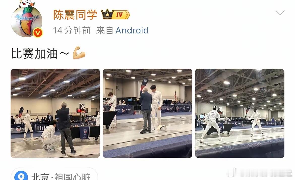 今天上午,陈震的大儿子在美国参加击剑比赛,他因为工作的原因没有去,所以他老婆负责陪儿子!