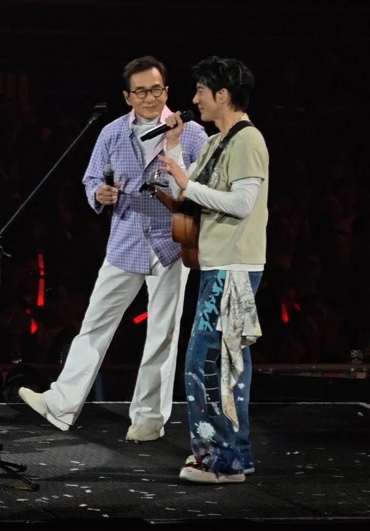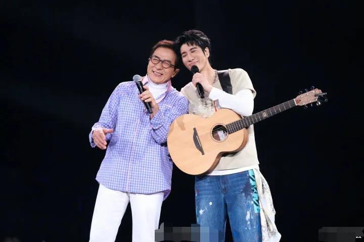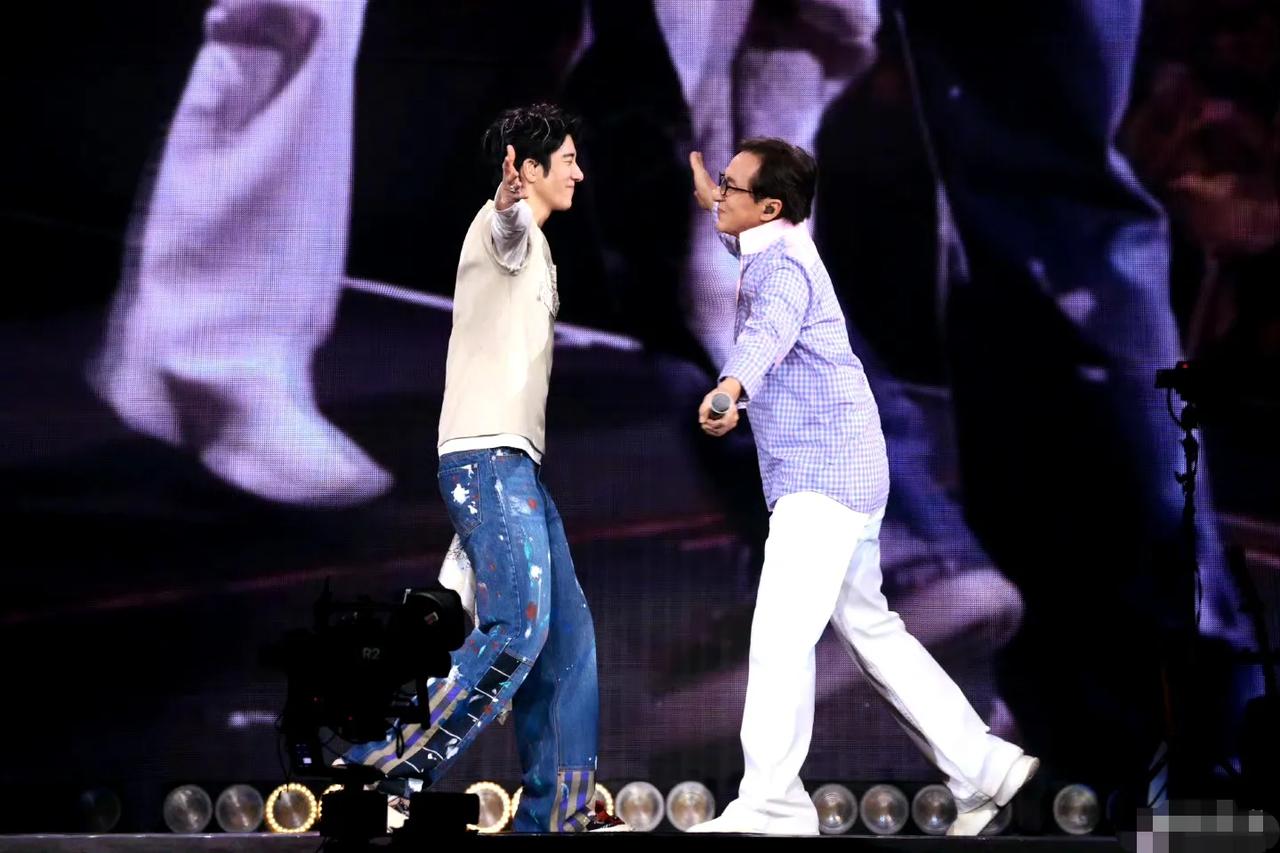 满脸溺爱,这才是好兄弟,好搭档。 王力宏的演唱会上请来了一位重量级嘉宾,他就是大哥成龙。可以看出,舞台上的成龙异常的兴奋,首先跟王力宏来了个大大的拥抱,然后不遗余力的为这位“忘年交”的好兄弟卖力撑场。 其实这不是成龙首次为王力宏站台了,早在多年前二人就在演唱会上一起演出过。不止如此,成龙也是非常提携这个小老弟,他们也一起合作过电影《大兵小将》,估计很多人还都记得吧。 71岁的成龙比49岁的王力宏大了足足22岁,相差20多岁的二人关系这么好还是挺让人没有想到的,只因他们算是两代人了。 两人认识几十年了,感情一直非常好,成龙也不止一次说过王力宏是他最喜欢的男艺人,没有之一。娱乐圈这样的友谊实在是弥足珍贵,让人羡慕。这样的二人才是真正的好兄弟,好搭档。 成龙