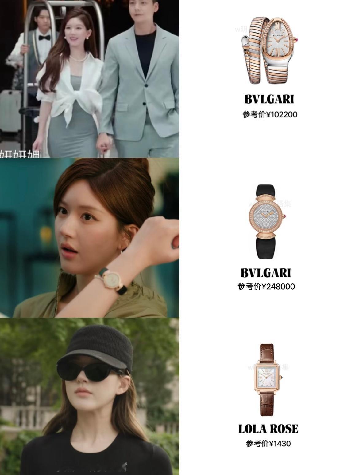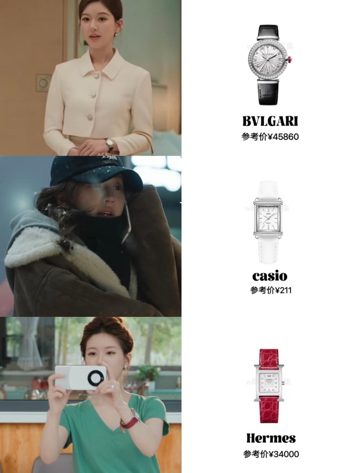许我耀眼剧中出镜的宝格丽全都是由赵露思「带资进组」的,这也解释了为何剧中除了宝格丽和爱马仕以外,赵露思佩戴的其他腕表都是千元左右的快消品牌。