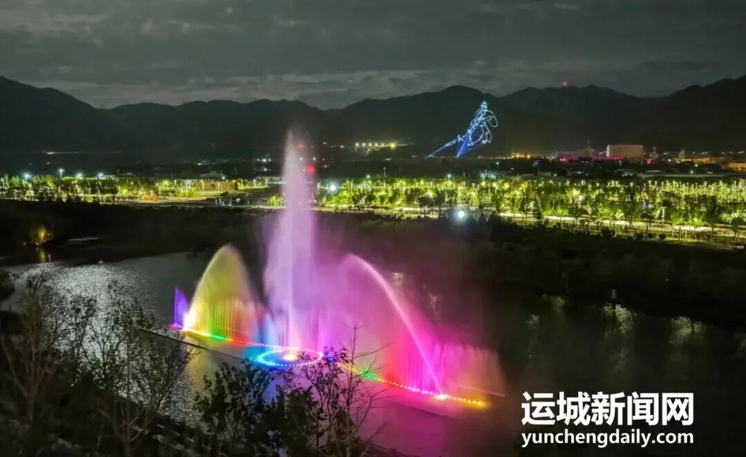 漫步在解州关帝庙正门前的广场上,每到夜晚时分,就能看到以中条山为背景的大型激光秀徐徐展开。超过15万平方米的山体成为天然巨幕,以光为笔、以影为墨,通过7分钟、5个章节的视听体验,讲述关公戎马一生的传奇故事。