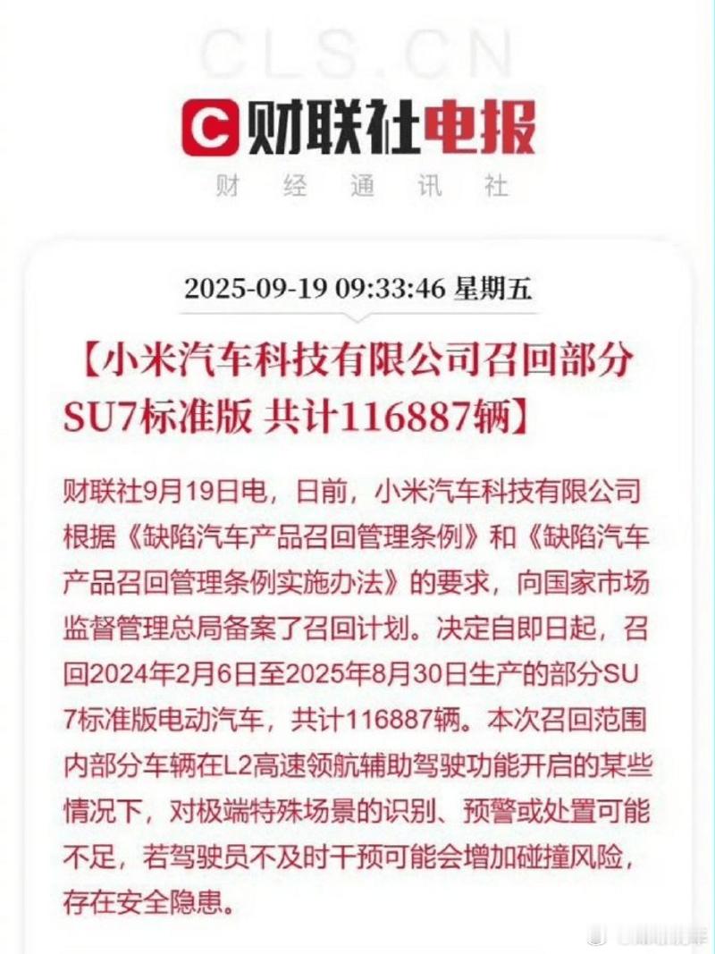 一年内被动召回二次十四万辆修复缺陷的企业,还有谁?苏七自行溜车事件,现在车主二次发视频自证清白,小米官方调查一面之词可信度不高
