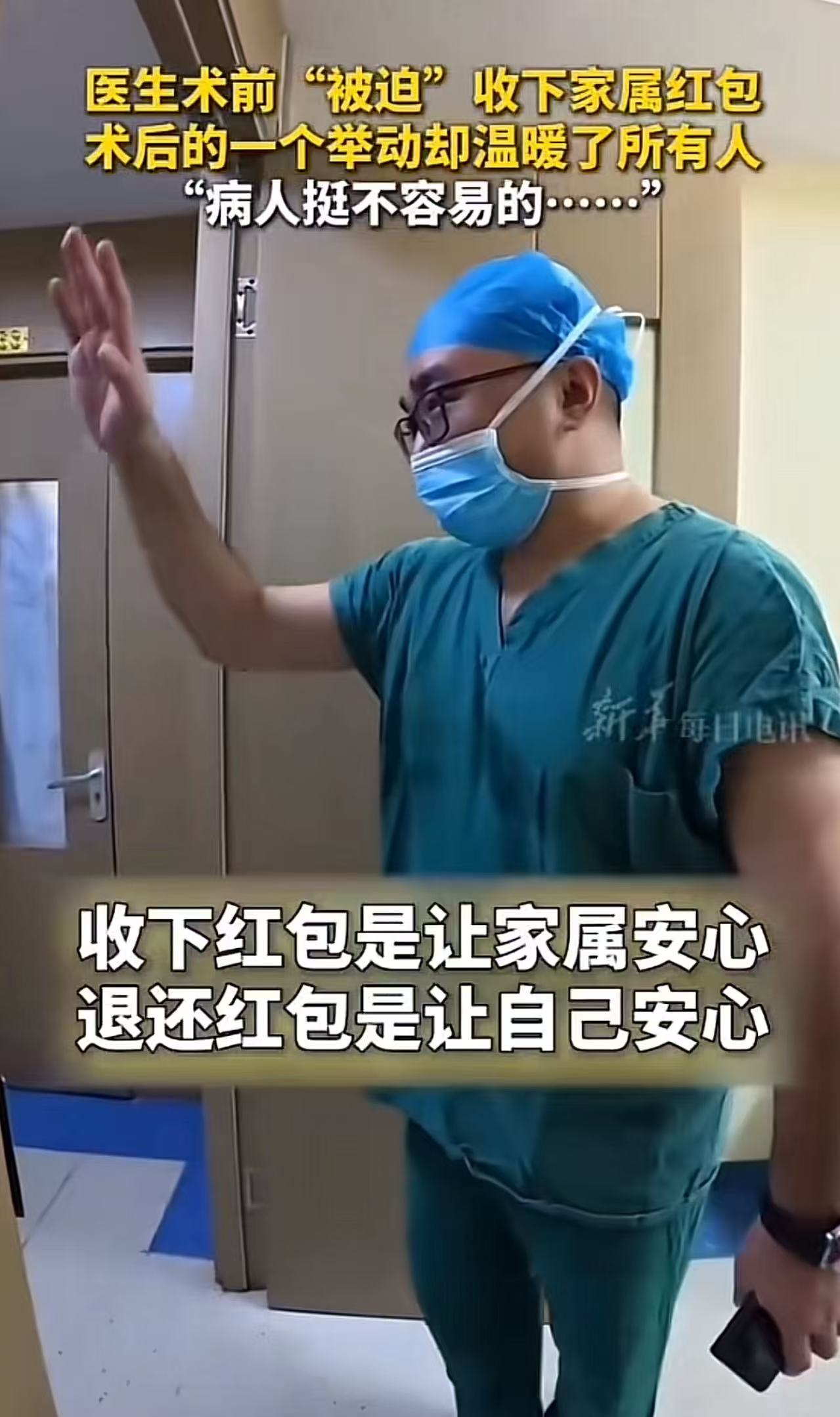 在他们看来,给医生红包似乎已经成了就医过程中的“潜规则”,没想到这位医生不仅医术高明,还如此廉洁奉公,主动退还红包。
