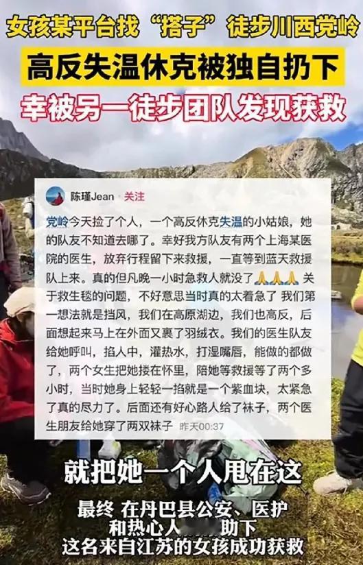 吓出冷汗!四川女孩网找徒步搭子,高原失温被弃,这哪是探险是拿命瞎作四川甘孜这