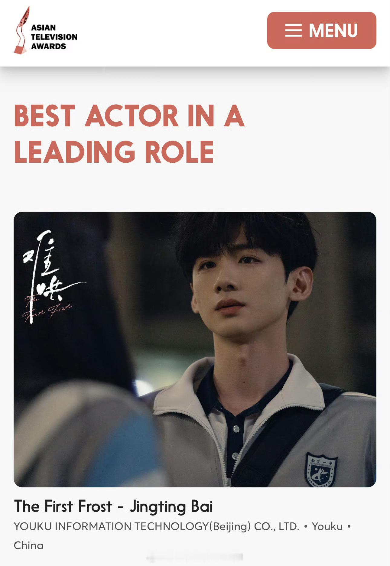 荣获第30届亚洲电视大奖最佳男主角提名🎉