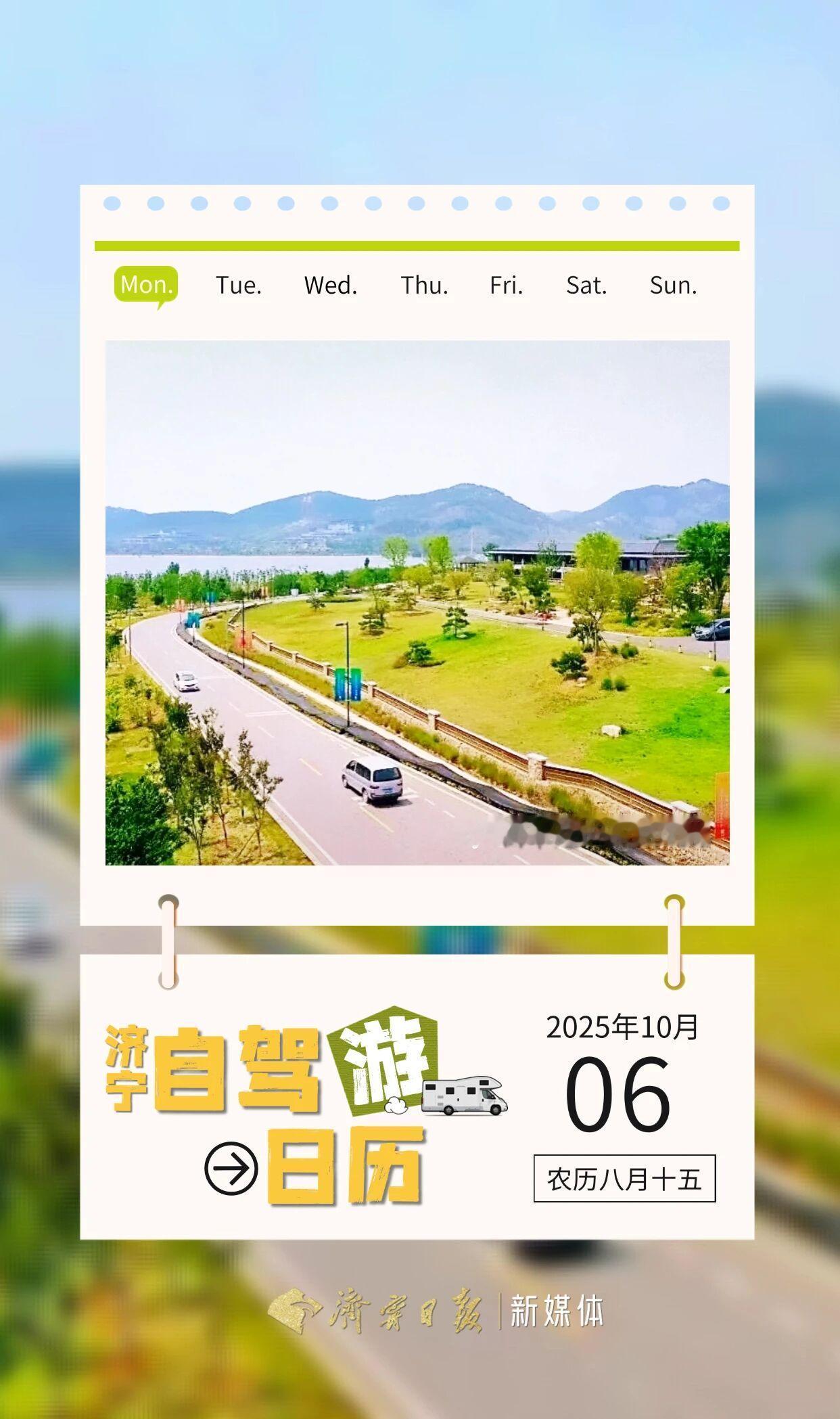 济宁自驾游日历丨曲阜尼山环湖北路 沿“静谧尼山,魅力圣水”而行 路依孔子湖蜿蜒 山色水光相伴 这条全长3.14公里的公路上 尼山书院静立、宾舍掩映、西官庄村悠然 沿途人文与自然交织成卷 行过之处,尼山圣境巍然 孔子像高耸入云 路如丝带,串联村居、驿站与景致 尼山五峰环抱、湖山相依 林、湖、草、田相映成画 一路皆诗 设计:李楠 编辑:石雨露 审核:张辉