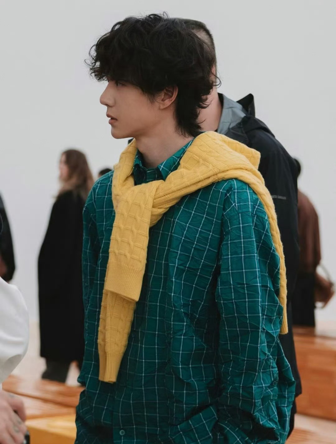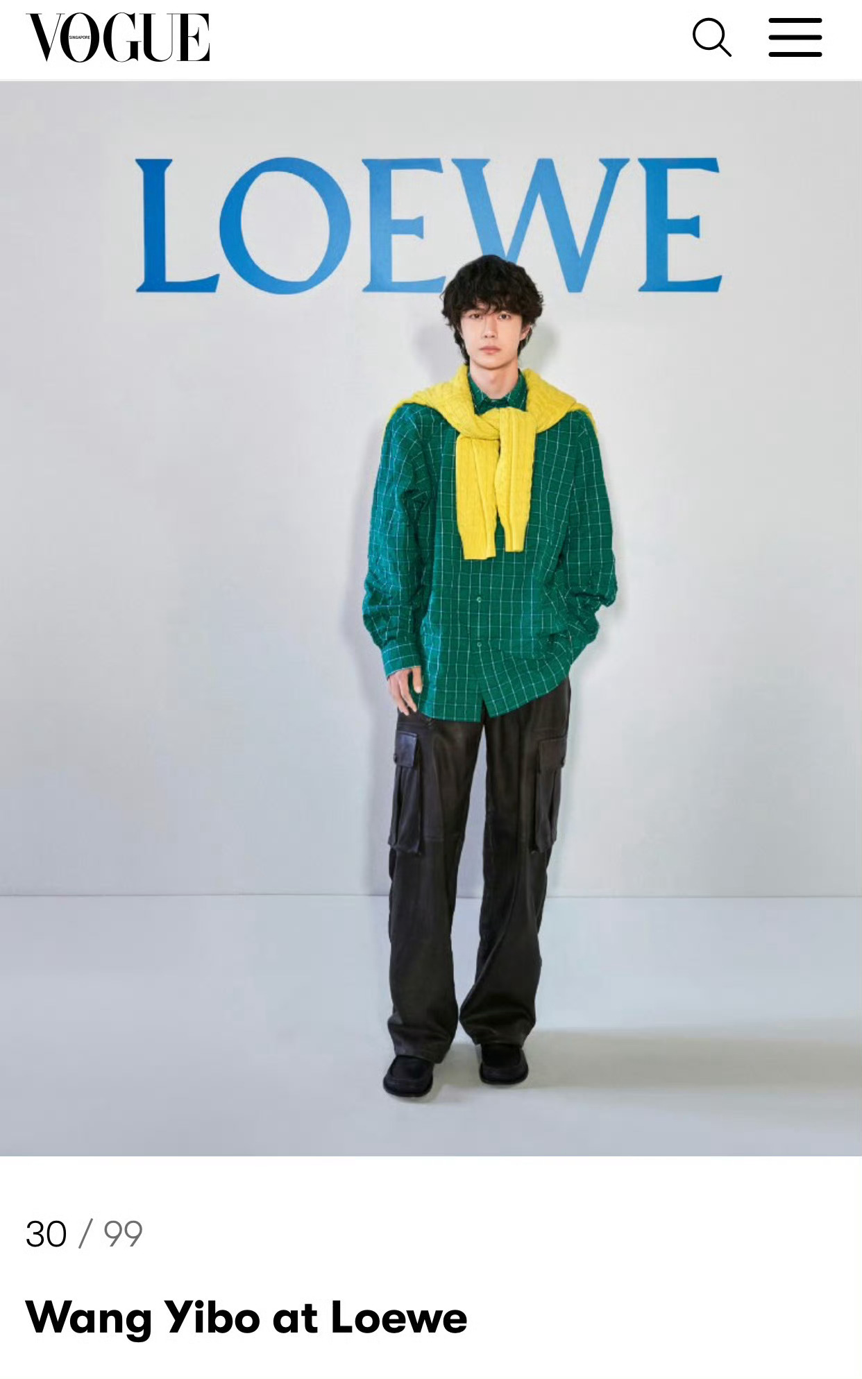 VOGUE官網:巴黎時裝周2026春夏最佳街拍王一博LOEWE!绿色条纹衬衫搭配柠檬黄针织衫披搭在肩头造型极具特色,权威的全球品牌代言人,在时尚舞台上的影响力显著!时尚巨星王一博✨