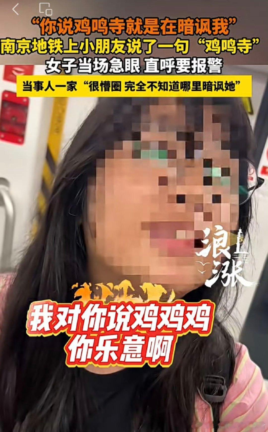 女子在地铁上因他人说到鸡鸣寺急眼怎么这么敏感啊?这是被迫害妄想症吧?正常人的脑回路根本不会联想到自己。看来以后出门在外话都不敢说了,遇到这样您好的人是真倒霉。