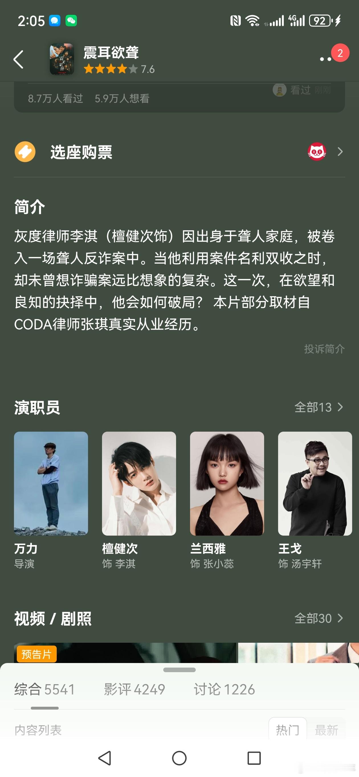 震耳欲聋豆瓣开分7.6分檀健次主演的《震耳欲聋》豆瓣开分7.6分,目前票房是1.
