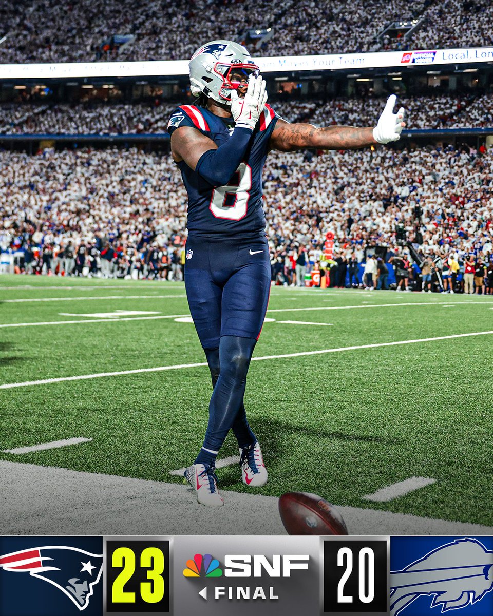 NFL官方X账号发推特报道,比赛结束:@Patriots在布法罗获胜!