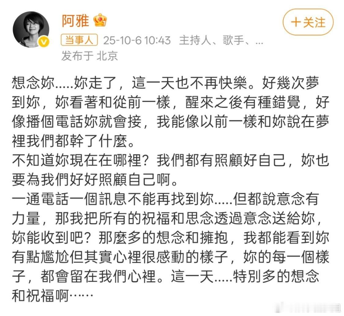 大S生日阿雅发文想念生日成思念节点,阿雅忆梦境诉牵挂,那句“拨个电话就接”太戳心