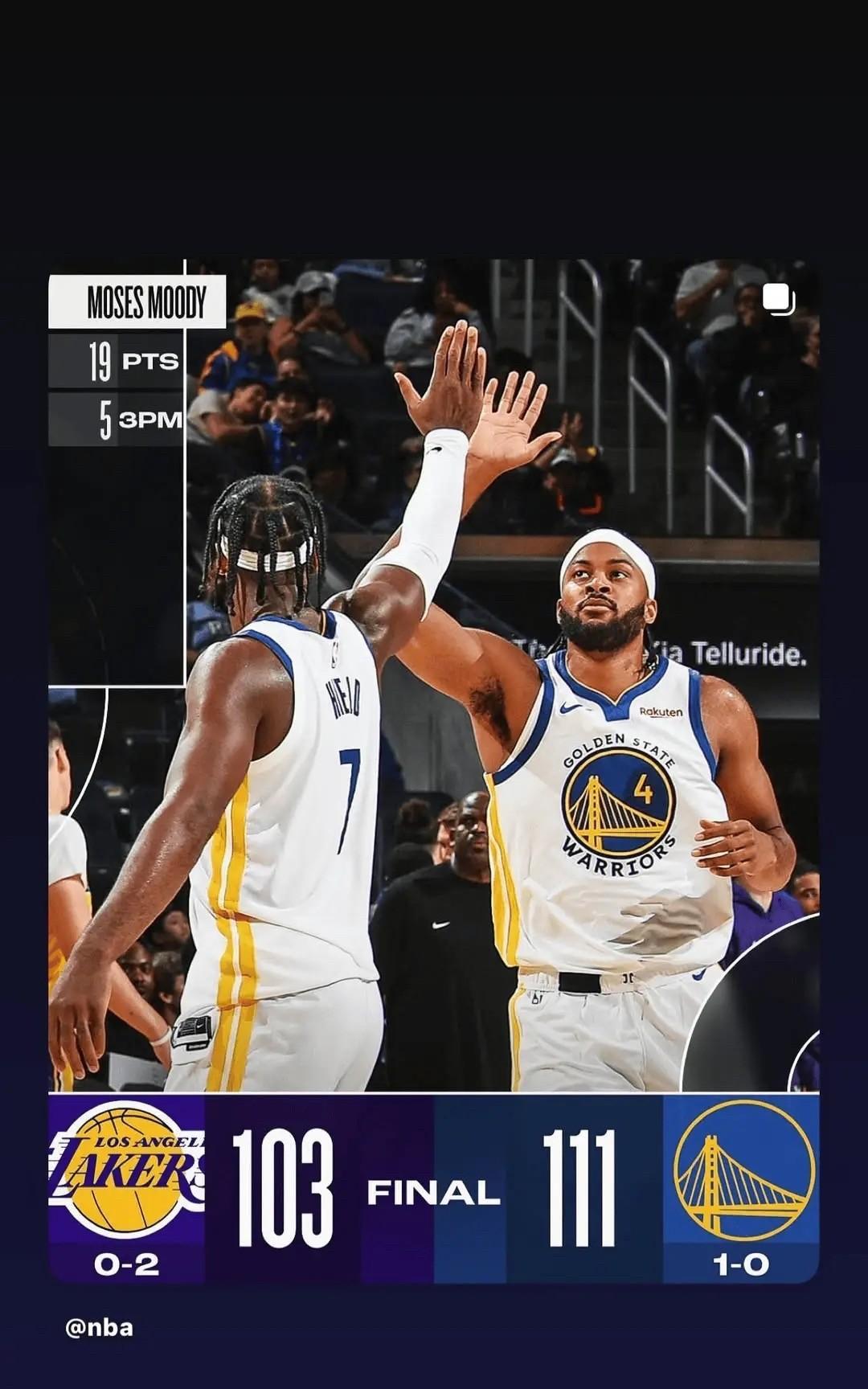 勇士4大替补都非等闲之辈: 1.希尔德 替补出战18分钟,投篮10中5,三分4中1,拿到11分2篮板3助攻3抢断。希尔德上赛季82场全勤,赛季末进入首发,场均能投进2.5个三分球,就凭他这一手三分,有能力竞争球队头号替补。 2.库明加 替补出战14分钟,投篮3中2,三分3中1,罚球2中0,拿到5分6篮板4助攻1盖帽。库明加年薪2420万,勇士不可能不给他出场时间。他是勇士最佳第六人,要不是有巴特勒,他稳坐首发。 3.穆迪 首发出战15分钟,投篮9中7,三分7中5,拿到19分1助攻1抢断。穆迪是今天勇士表现最出色的球员,正负值+21全场最高。梅尔顿复出之后,穆迪不得不打替补,穆迪是即插即用型球员,夏天的苦练让他更强了。 4.霍福德 替补出战14分钟,投篮3中1,全部出手都是三分。拿到3分4篮板3助攻1抢断3盖帽。霍福德今天表现异常出彩,和库里配合也十分默契,还给库里送出妙传。但霍福德已经39岁了,进首发也的体力是巨大考验。打替补是最合适的。 湖勇大战勇士全民皆兵,又打出了一场团队胜利,科尔的排兵布阵非常有条理,每个人都有表现的机会。新赛季的勇士不可小觑啊。