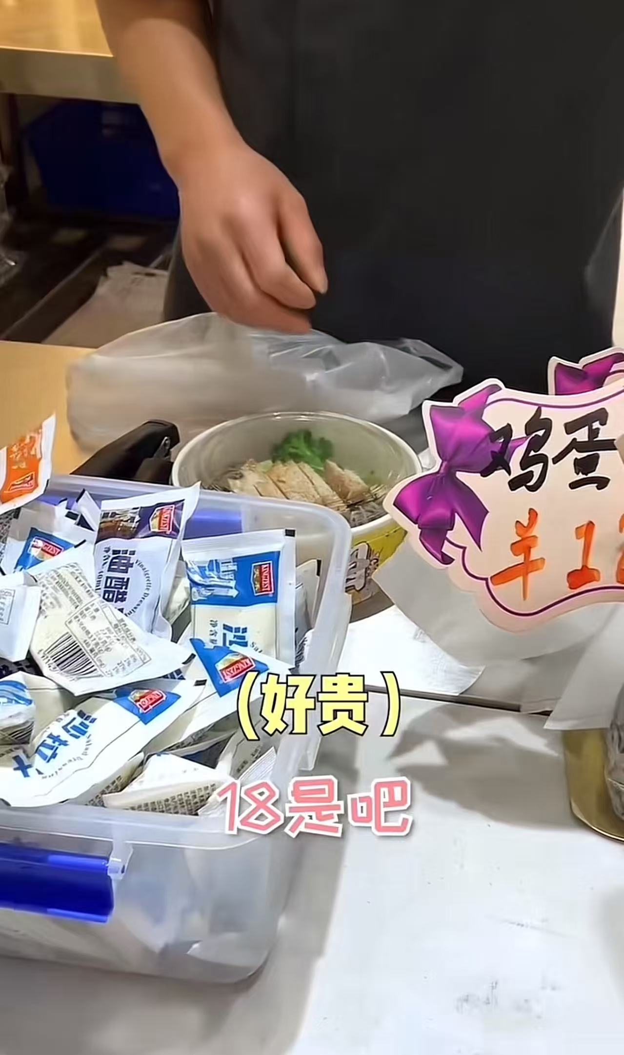 晚上,为了保持身材,女儿选择了轻食减脂餐,把鸡胸肉、黄瓜、荞麦面混在一起,这一顿花了18块钱。