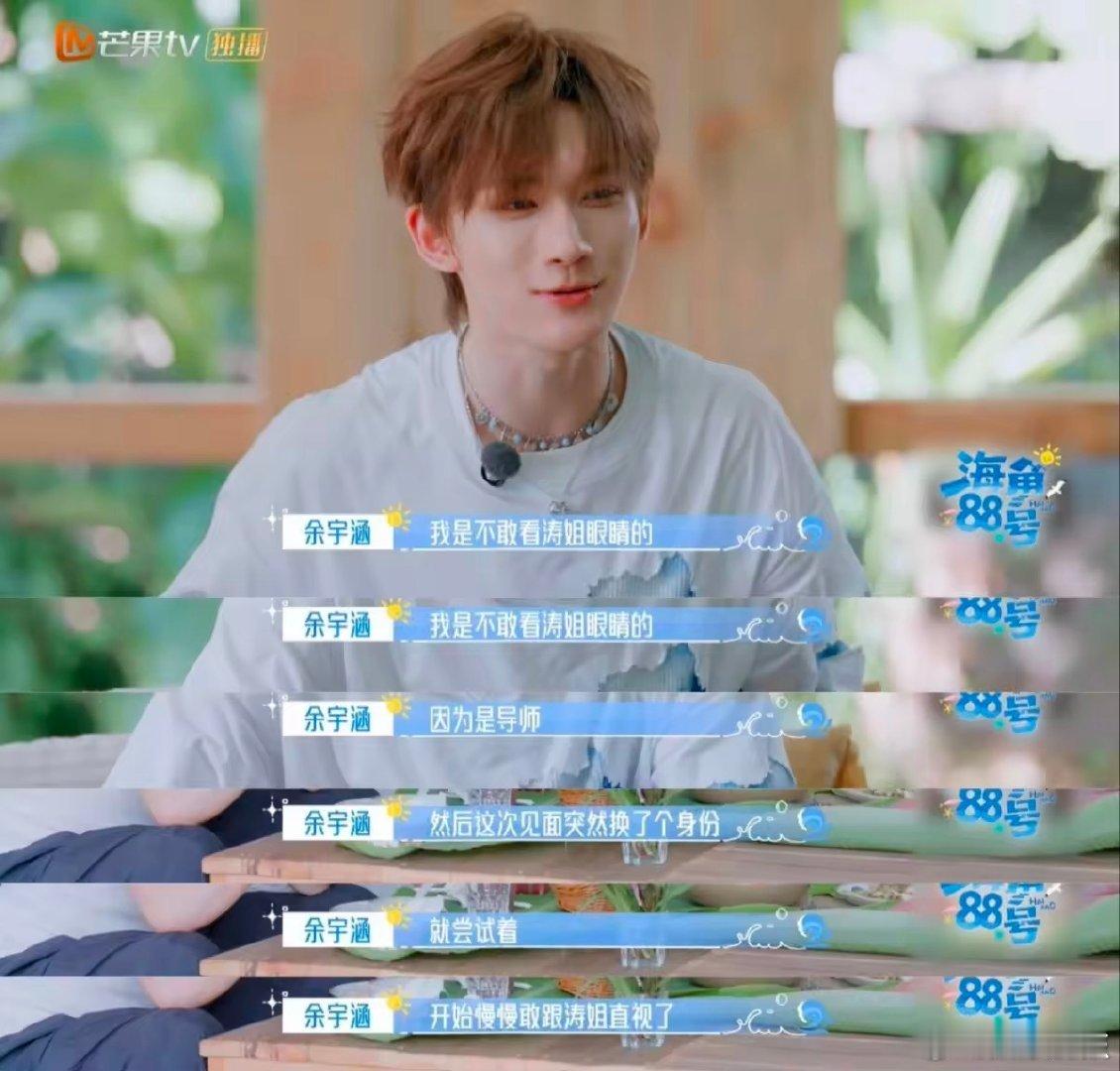 余宇涵不敢直视刘涛的眼睛海角88号 笑亖!跟一起调试民宿音响,涛姐问他音质怎么样,他盯着音响按钮说“挺好”,就是不敢看涛姐,这“选择性失明”的紧张,我直接笑出眼泪!