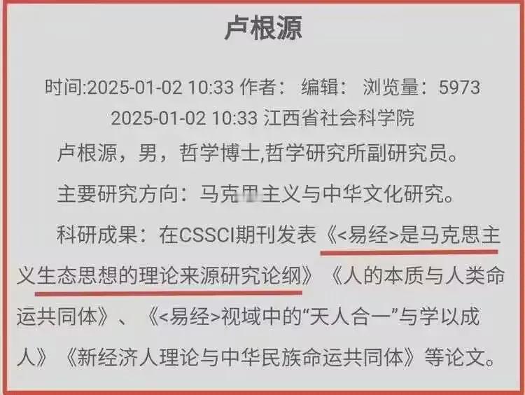 好家伙!我真的好家伙!现在连马克思主义都要认祖归宗了,而且祖宗是...《易经》?某学者的一波操作,直接炸翻网络!说是三千年前的《易经》早就埋下了马克思主义的种子! 乍听离谱,但细琢磨...好像也不是没有一点共通性。咱细看逻辑,《易经》讲阴阳平衡,马克思主义搞辩证唯物主义,两者都强调整体观和矛盾运动。就连黑格尔的辩证法,也被扒出可能受过易经启发。但问题来了,非说马克思的思想是抄易经的,那就好比说苹果树是西瓜籽种的,跨时空硬扯啊! 其实,真正的爆点不在谁源于谁,而是中西思想的神奇共鸣。老祖宗早喊天人合一!马克思主义的中国化能成功,正因为和中华文化骨子里还是合拍的。 总之,老祖宗的智慧不缺粉丝,但缺的是能让它活出现代范儿的脑洞。文化自信不是翻旧账,而是让古老智慧和当代思想碰撞出新火花!