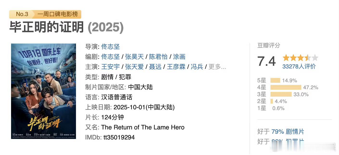 国庆档电影豆瓣评分国庆档首推《志愿军3》!豆瓣7.4分,票房领跑,实至名归。全家