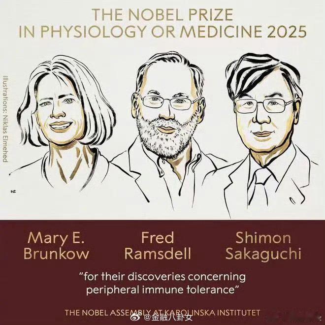 2025年诺贝尔生理学或医学奖揭晓 !2025年诺贝尔生理学或医学奖公布!获奖者是 玛丽·布伦科(Mary E. Brunkow),弗雷德·拉姆斯德尔(Fred Ramsdell)和坂口志文(Shimon Sakaguchi) 。 以表彰他们在外周免疫耐受方面的发现[并不简单] 诺贝尔