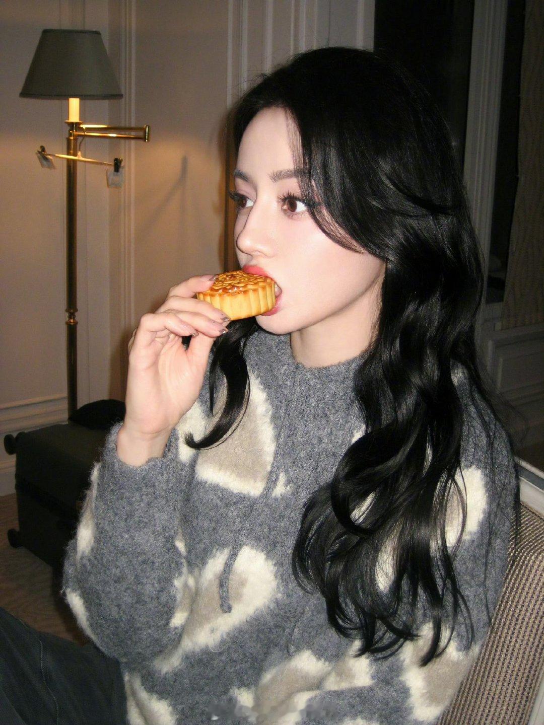 迪丽热巴说猜猜我吃的什么馅迪丽热巴中秋营业三宫格