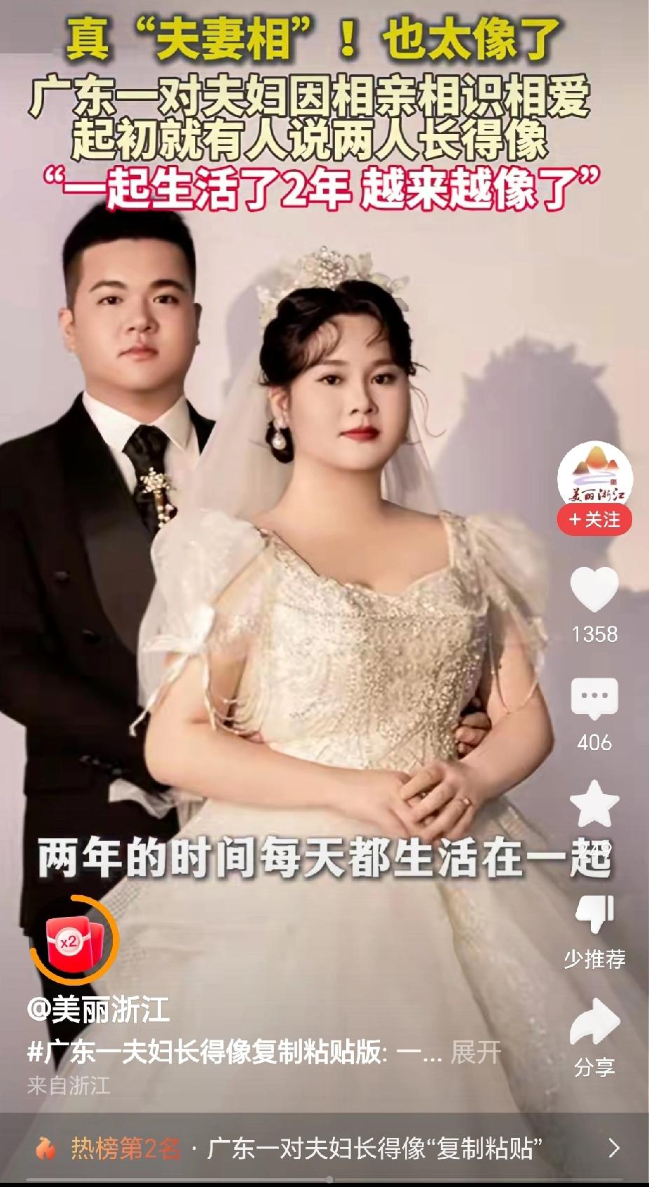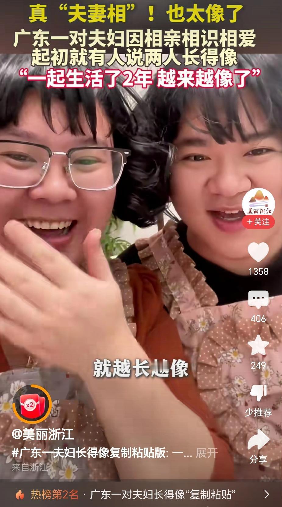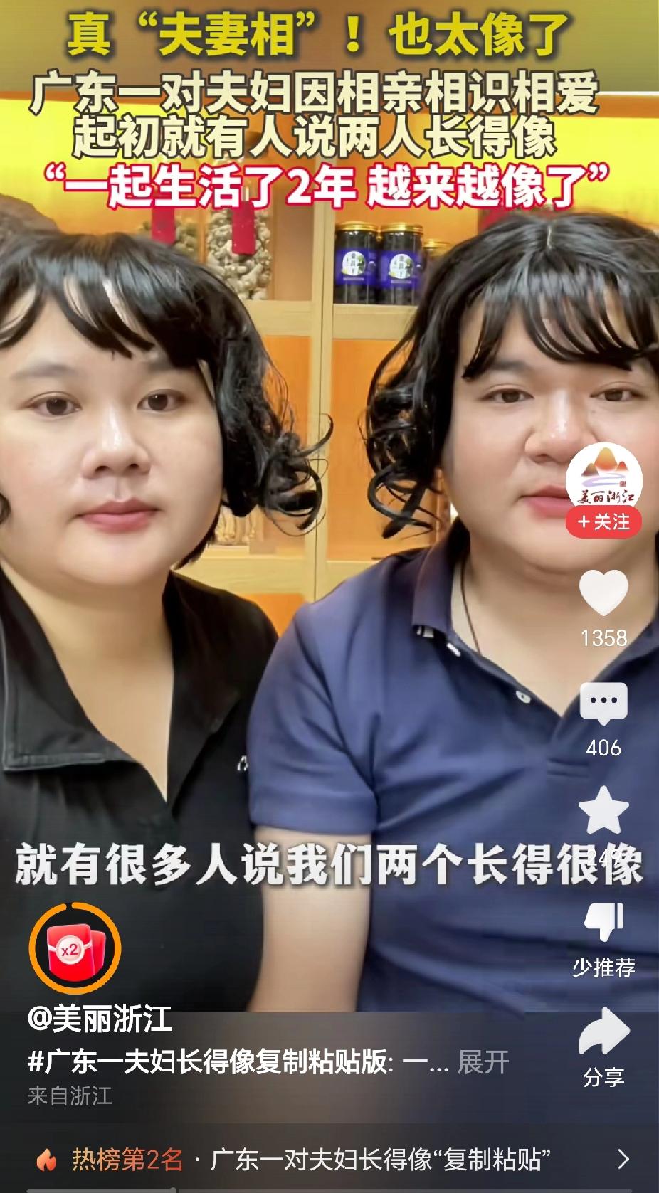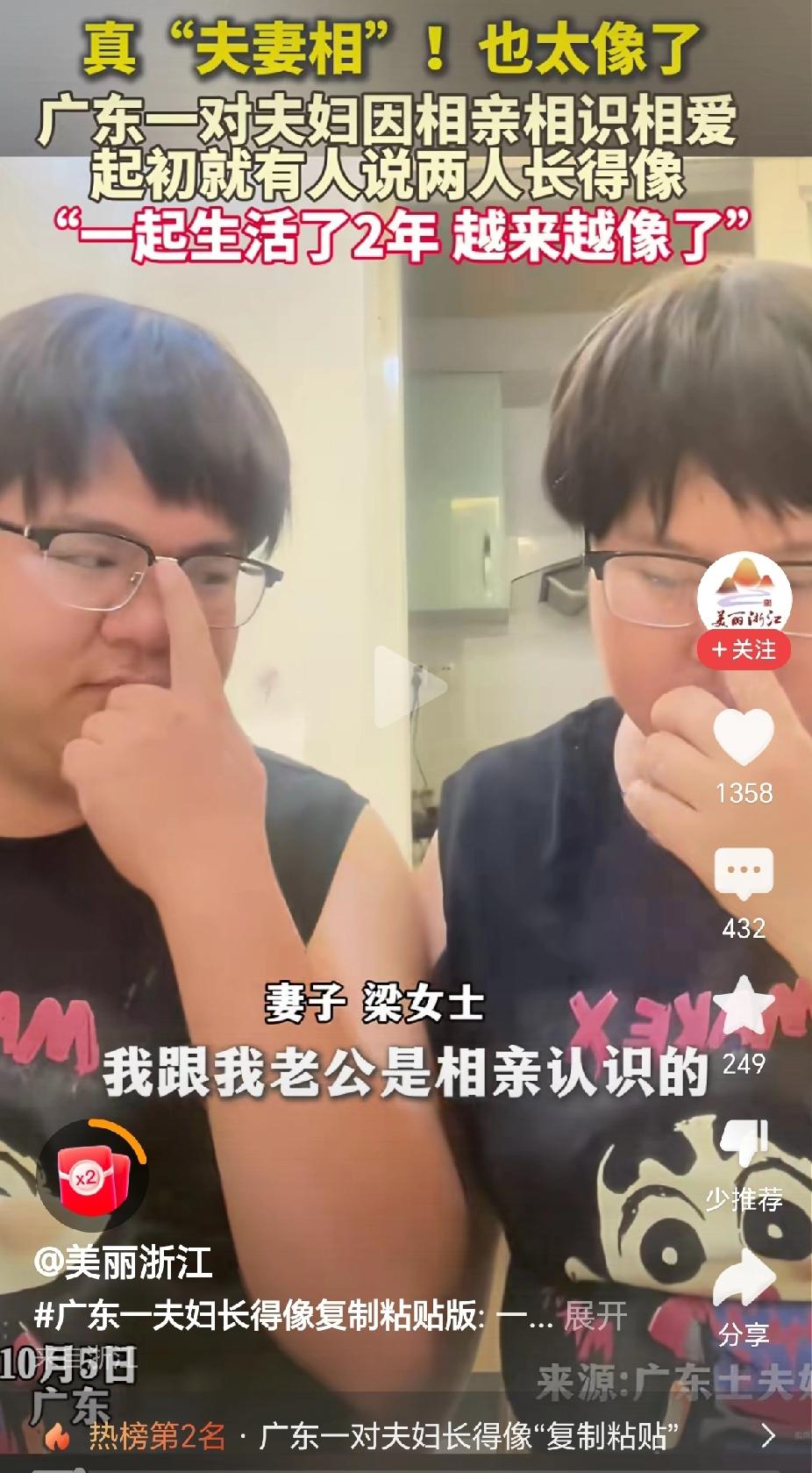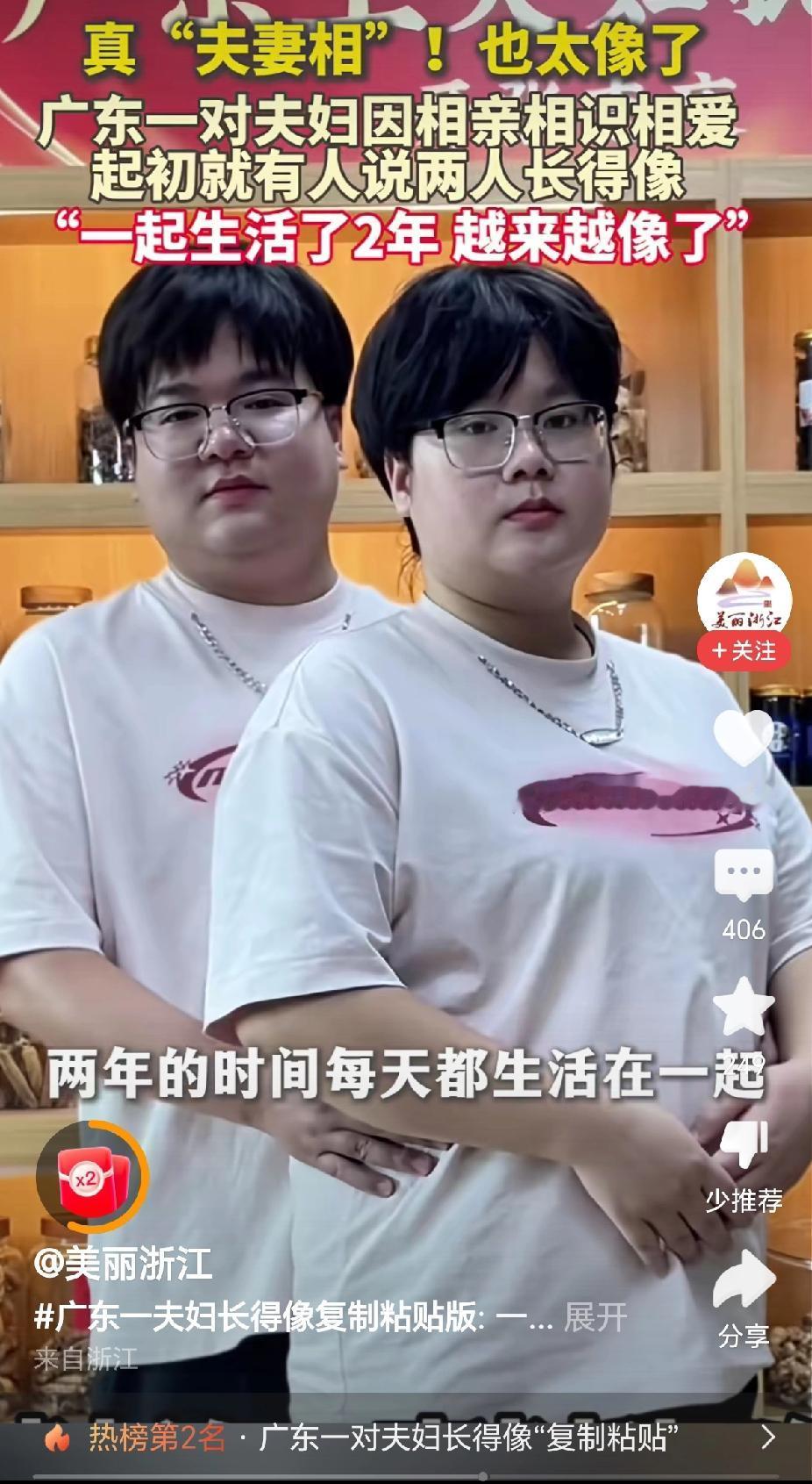 “太像了,一对夫妻长得像'复制粘贴'一样!”近日,广东,一对夫妻晒出合影照,一起