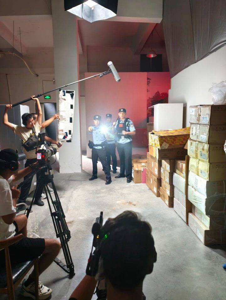 网宣科的民警虞佳杰也是创作团队成员之一,他告诉记者,正式拍摄时间是国庆节前,9月26号早上6点多开拍,持续到27号凌晨三点结束,“但脚本打磨修改等也耗了不少时间,有时晚上八九点还在改剧本,前期差不多从9月中下旬就开始策划了,当时疯狂刷了很多短剧。”