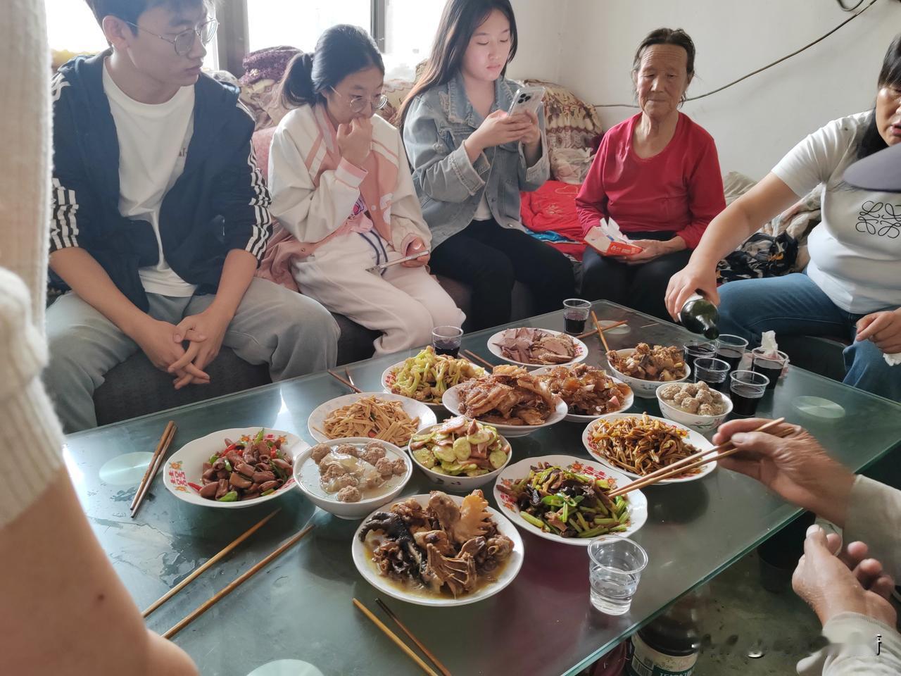 今天是中秋节,九点才起床,简单吃了点早餐,就和老婆出去买了点菜,接着嫂子和大哥就回老家了,大哥昨天刚从招远回来,本想在附近买点羊汤回家的,结果错过了,就没有买,到了家里,我就和大哥准备午餐,老爸先把小公鸡给炒上了。 十二点钟的时候弟妹及两个侄女也回来了,还买了猪头肉,猪肝,肴肉,馒头和大饼,侄子和侄媳妇要先去他岳母家,所以吃饭我们就没有等,赶紧做饭,也没做什么山珍海味,只是做了些家常便饭,鹿茸菇炖鸡,辣炒小肠,粉皮炖丸子,炒豆腐皮,猪头肉拌黄瓜,鹿茸菇炒肉,菜花炒肉,黄花菜炒肉,肴肉,苦肠拼猪肝和炸海鱼。 三点多的时候,侄子和侄媳妇也来了,还给老妈带了很多礼品,看的出来老妈很高兴,吃过午饭,都给收拾干净,快五点钟的时候才各回各的家。
