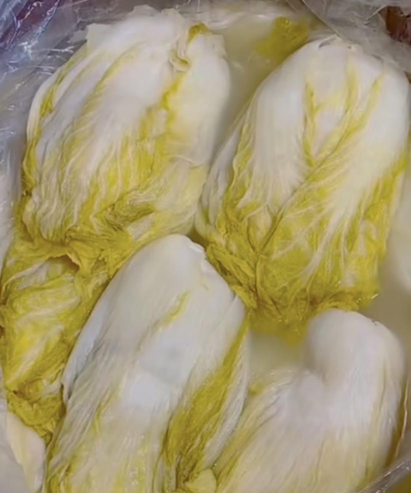 腌酸菜不烂秘诀!100个人里面有99个人第一步就做错了,只要记住这几个小窍门,颗颗金黄,又酸又脆,咋做都好吃。 我们要挑选新鲜,无病虫害的白菜,买回来先晒个3-4天,让大白菜蒸发一下水分,再把大白菜老帮,烂根,烂白菜叶子摘掉不要。 我们腌菜前一定要在缸里套一个塑料布,腌酸菜用的布,可以隔离各种油烟灰尘杂质。 白菜处理好不用清洗,也不用焯水,直接放入缸里,一层白菜一层盐,100斤白菜大约一斤左右盐,按压紧实,把袋子口扎紧,菜的顶部压一个大石头。 腌制2-3天之后,再沿着酸菜布外边加入凉水,(也就是缸的里面,酸菜布的外边)水加的不要太满,离缸沿有十多公分就行了。 一个月左右就可以吃了,颜色金黄,又酸又脆,炒着吃,炖粉条子嘎嘎香! 喜欢吃酸菜不会做的朋友们,不妨可以试试哦!#酸菜家常做法# #腌菜酸菜# #腌菜秘诀# #腌酸菜配方# #腌酸菜大白菜# #酸菜腌酸菜#