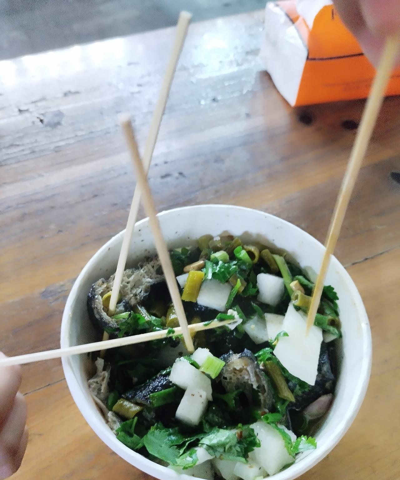 今天俩孩子过中秋节了,晚上,带着孩子逛街,买了平时不吃的臭豆腐,一碗10块,我尝