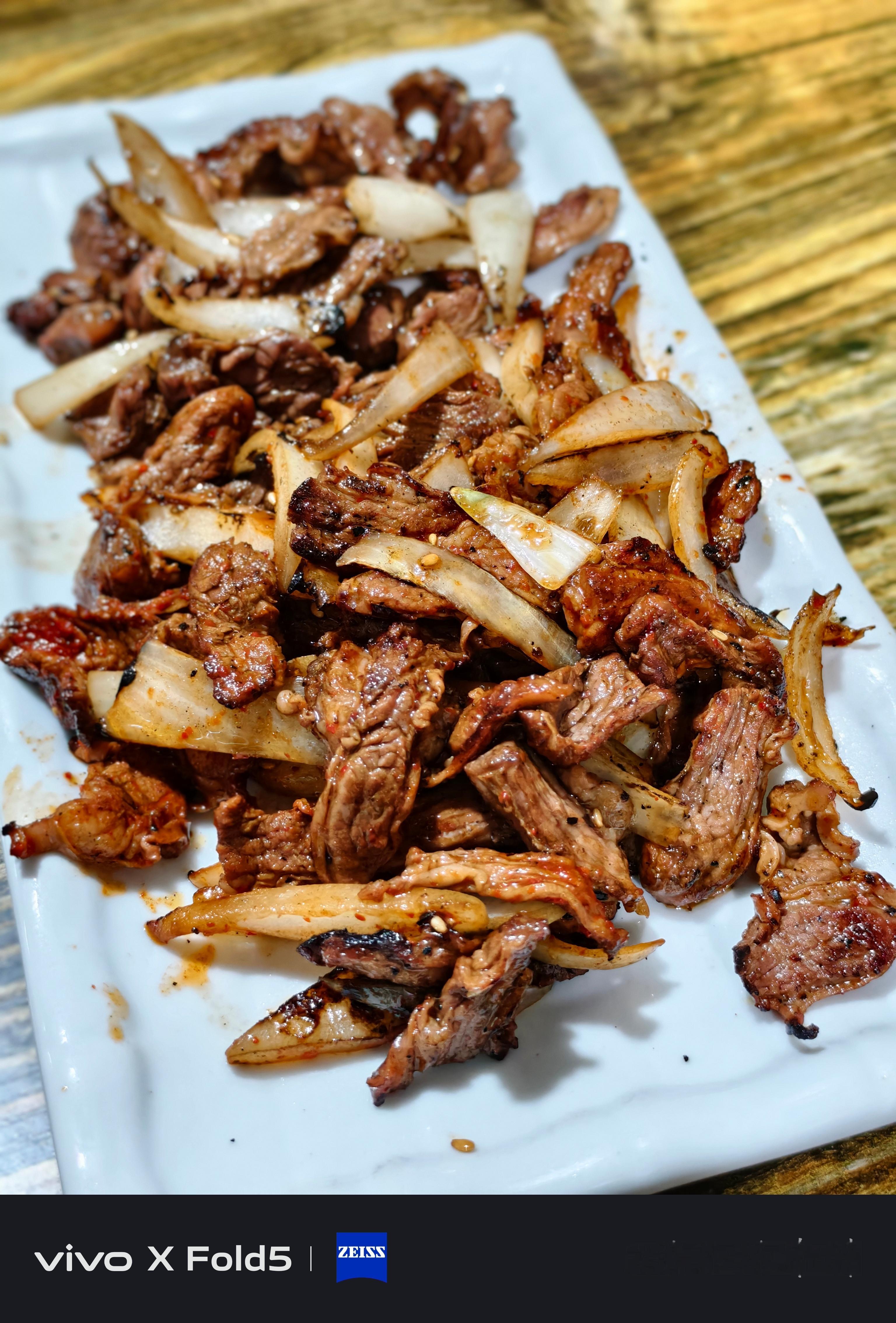 白山漏勺烤肉,据说是白山特色,图1那个平底锅其实跟漏勺一样有好多洞洞,猛火爆炒的时候火苗能直接接触到肉,烟火气十足。