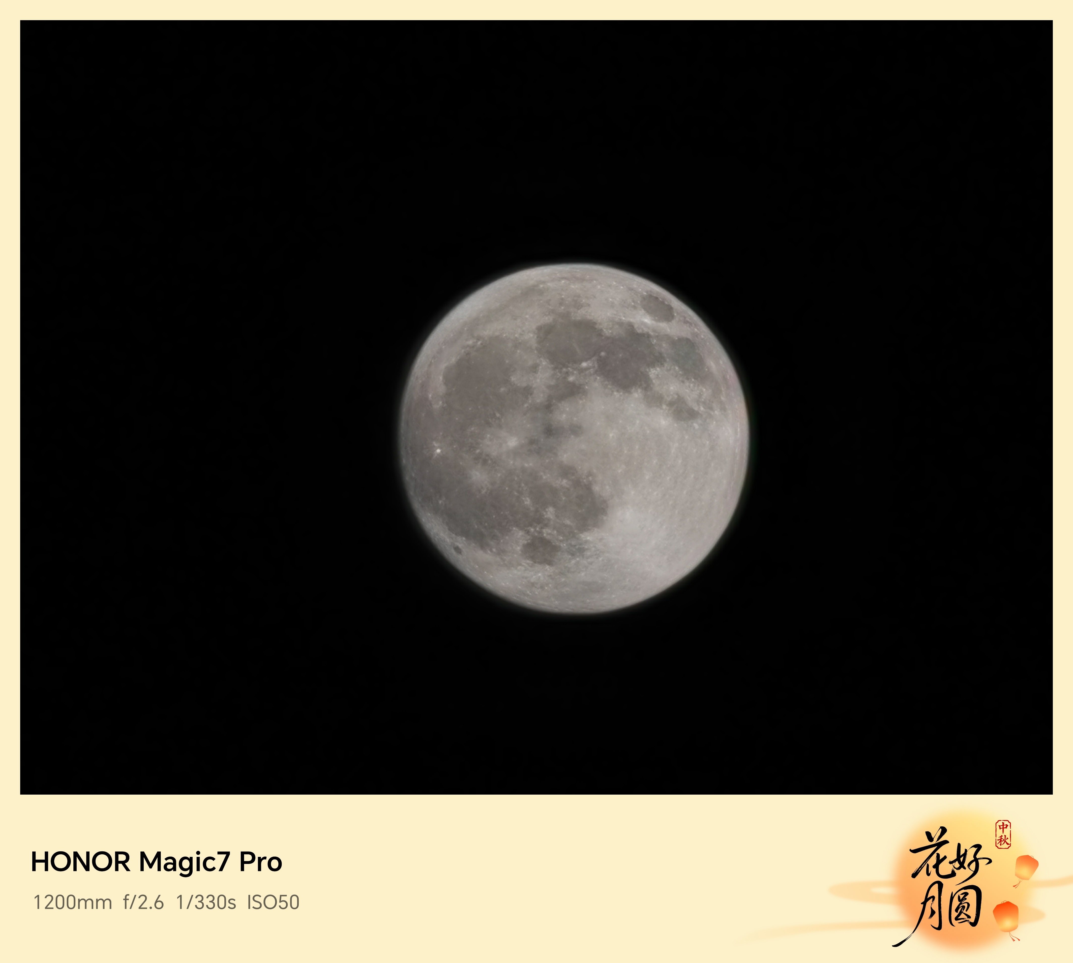 月亮用荣耀Magic7 Pro拍拍中秋的月亮,大家喜欢图一专业模式的10X还是经过算法优化的呢?