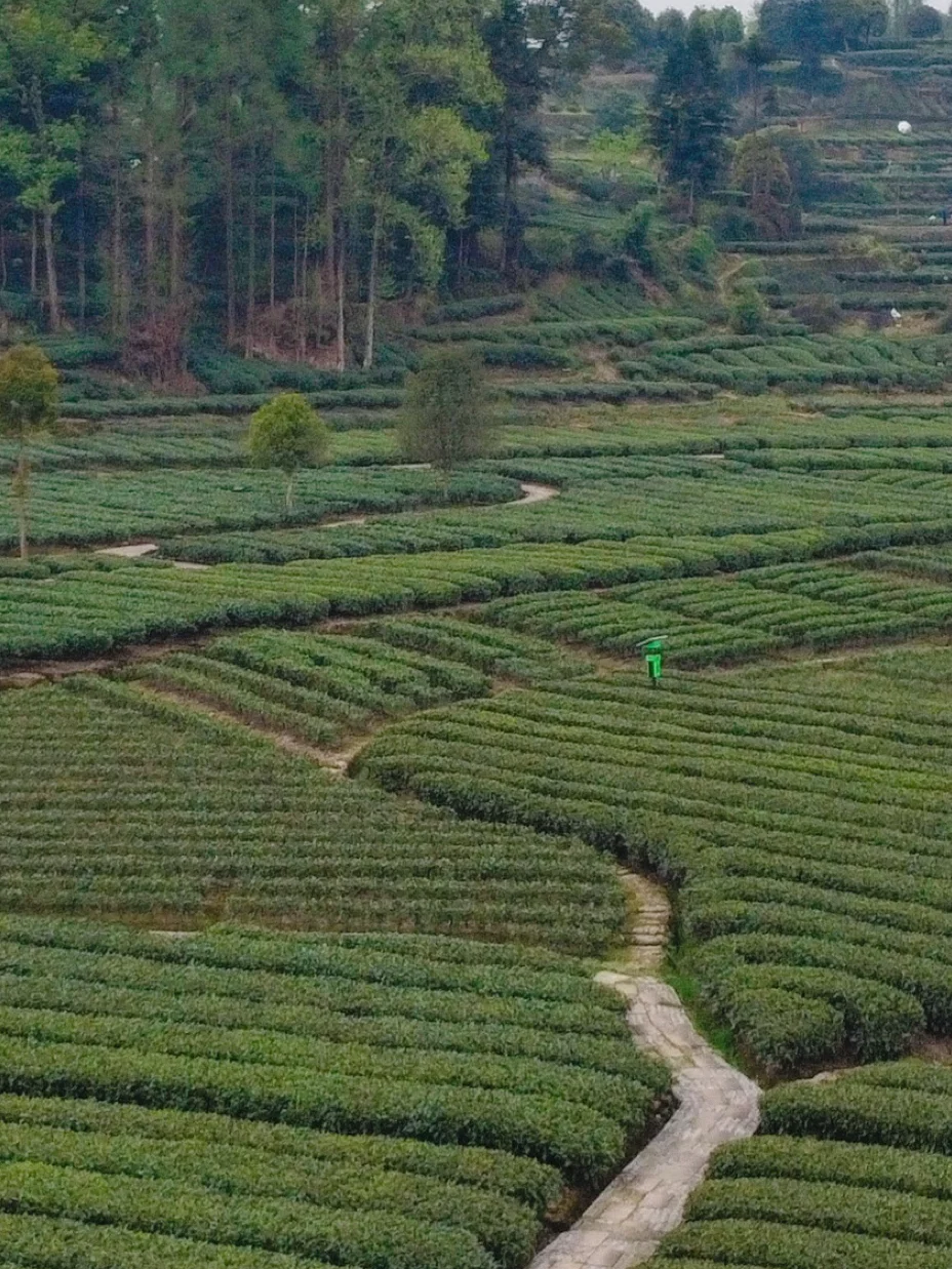 在接近「夹关古镇」两三公里的路上到处都可以看到绵延起伏的茶山⛰️现在正是春茶采摘季,茶农们正在地里忙碌着!