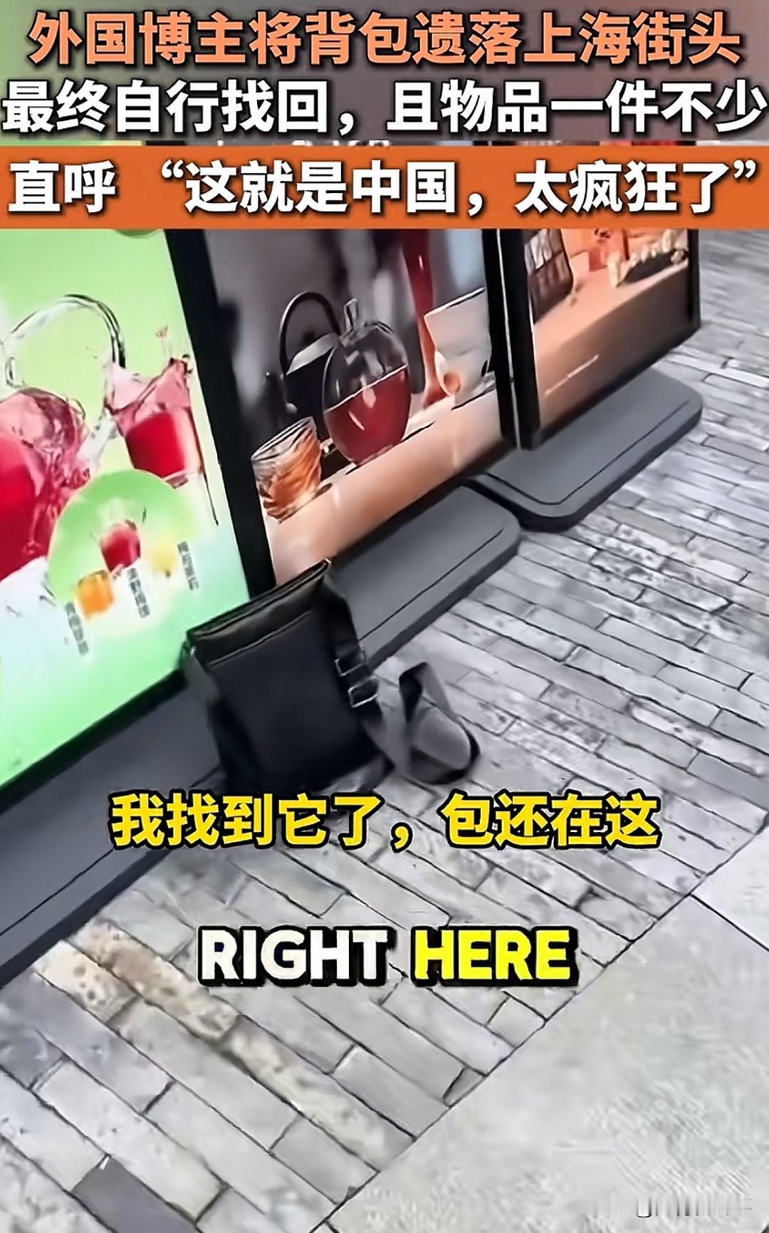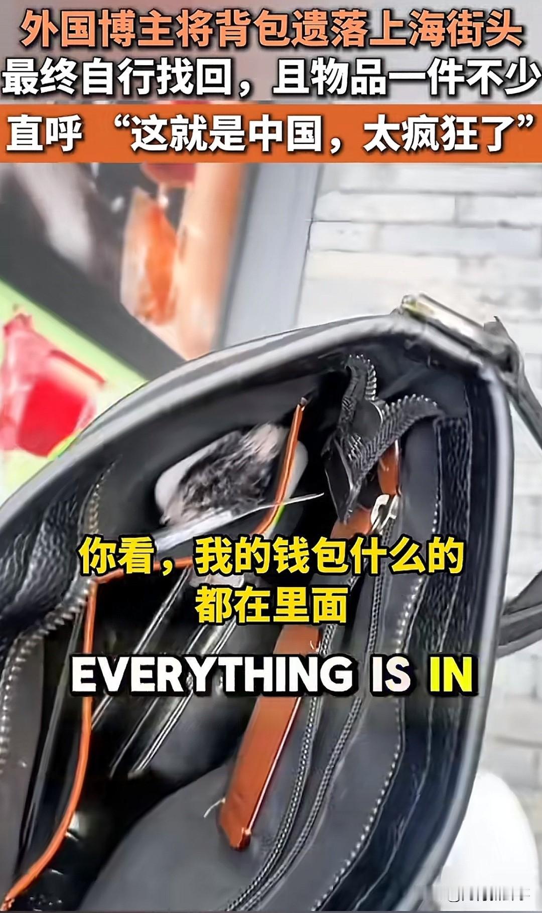 “我的天!上海街头一外国博主把装着钱包、Visa卡、AirPod的背包落街上了,国庆假期人挤人,本以为找不回来了,结果回去一看,包好好在那儿,东西一件没少!他直呼‘这就是中国,太疯狂了’ 就这事儿,谁看了不觉得暖心?在人来人往的街头,丢了这么多贵重物品还能完璧归赵,这背后是咱中国人刻在骨子里的诚信和善意啊!这种安全感,绝了! 要是你捡到别人的包,会守着等失主吗?你有没有过类似的暖心经历?来评论区聊聊~”