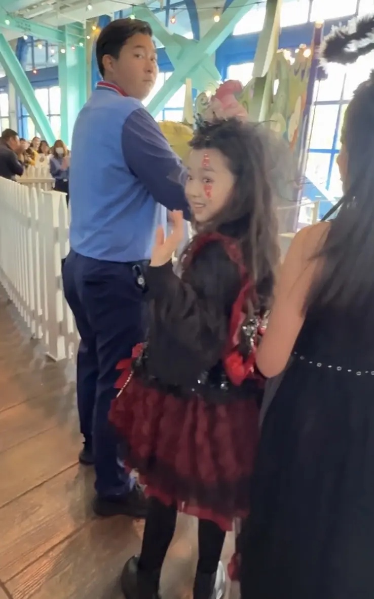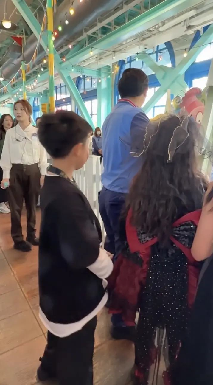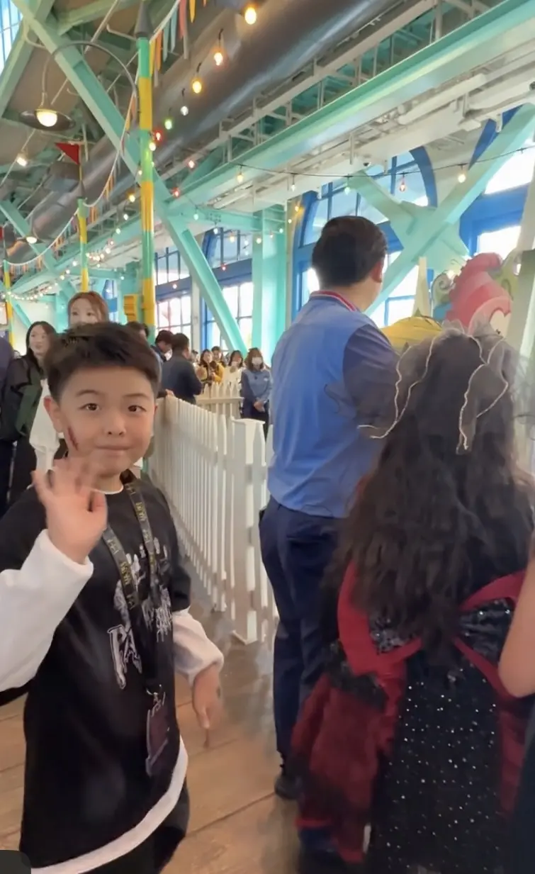 佟丽娅董璇带俩娃逛环球影城。小酒窝跟朵朵都好有礼貌,被认出来就大方打招...