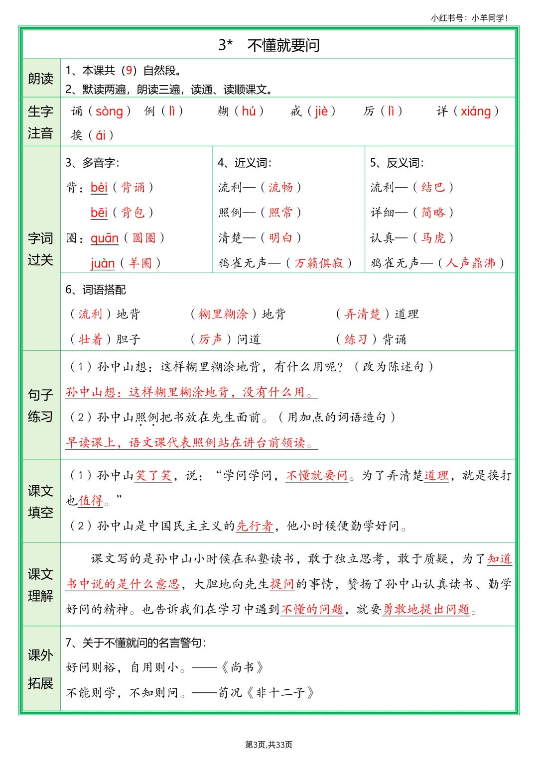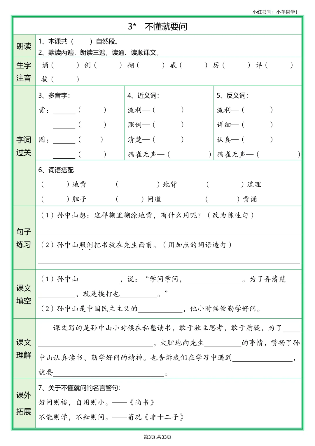 三年级上册预习单定版啦📚