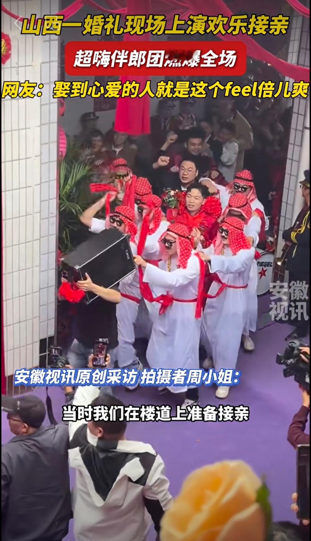 山西一婚礼现场上演欢乐接亲,超嗨伴郎团燃爆全场。网友:娶到心爱的人就是这个fe