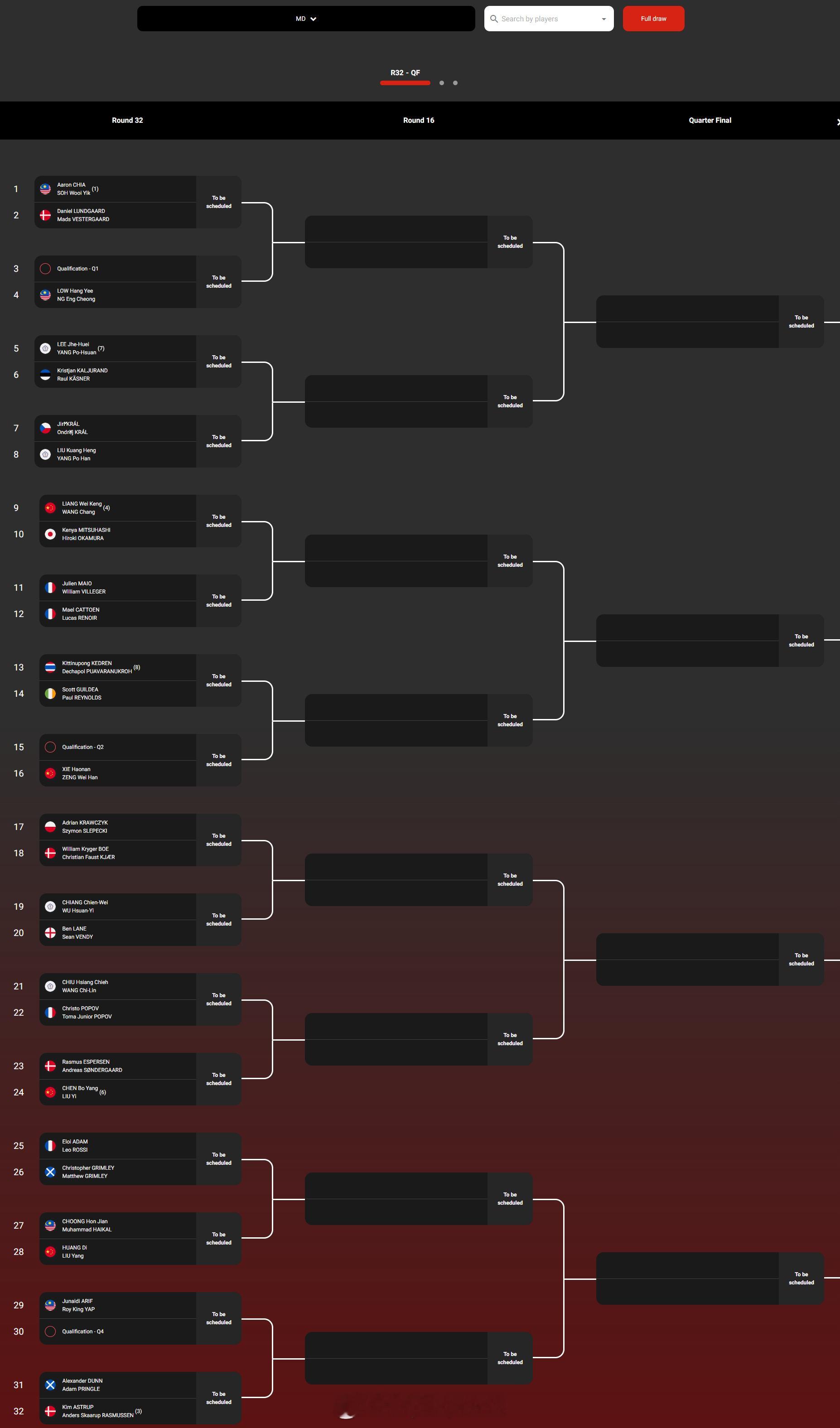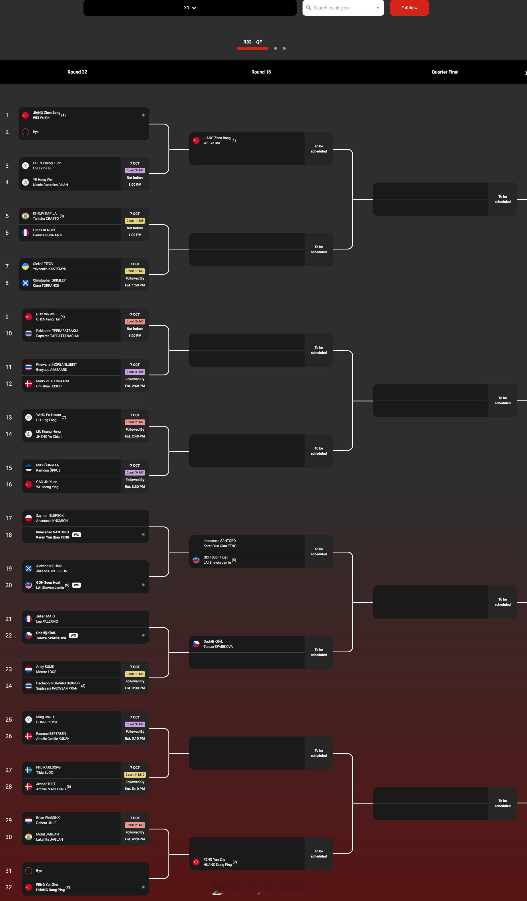 混双:蒋振邦/魏雅欣、冯彦哲/黄东萍、郭新娃/陈芳卉、高家炫/吴梦莹