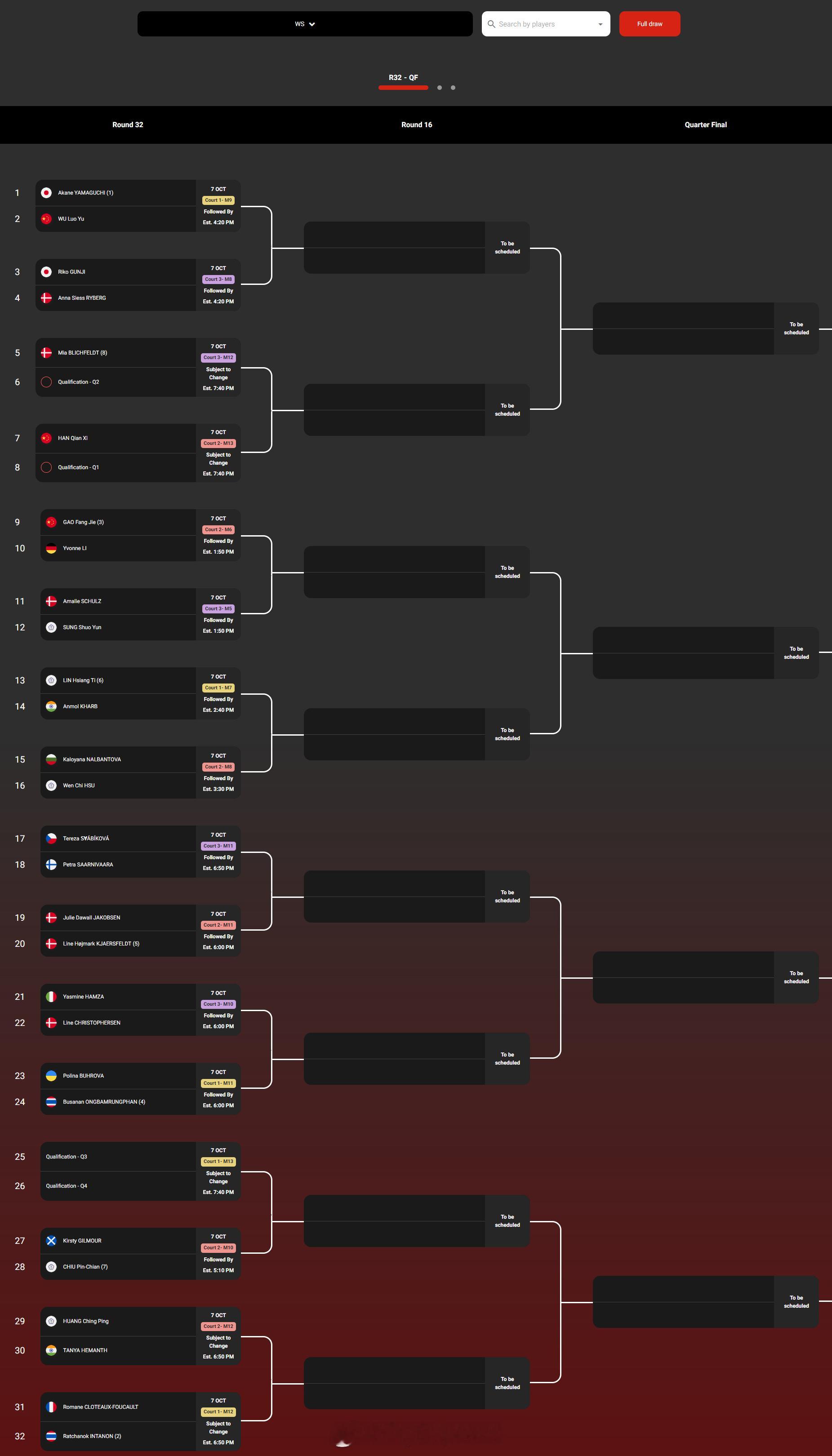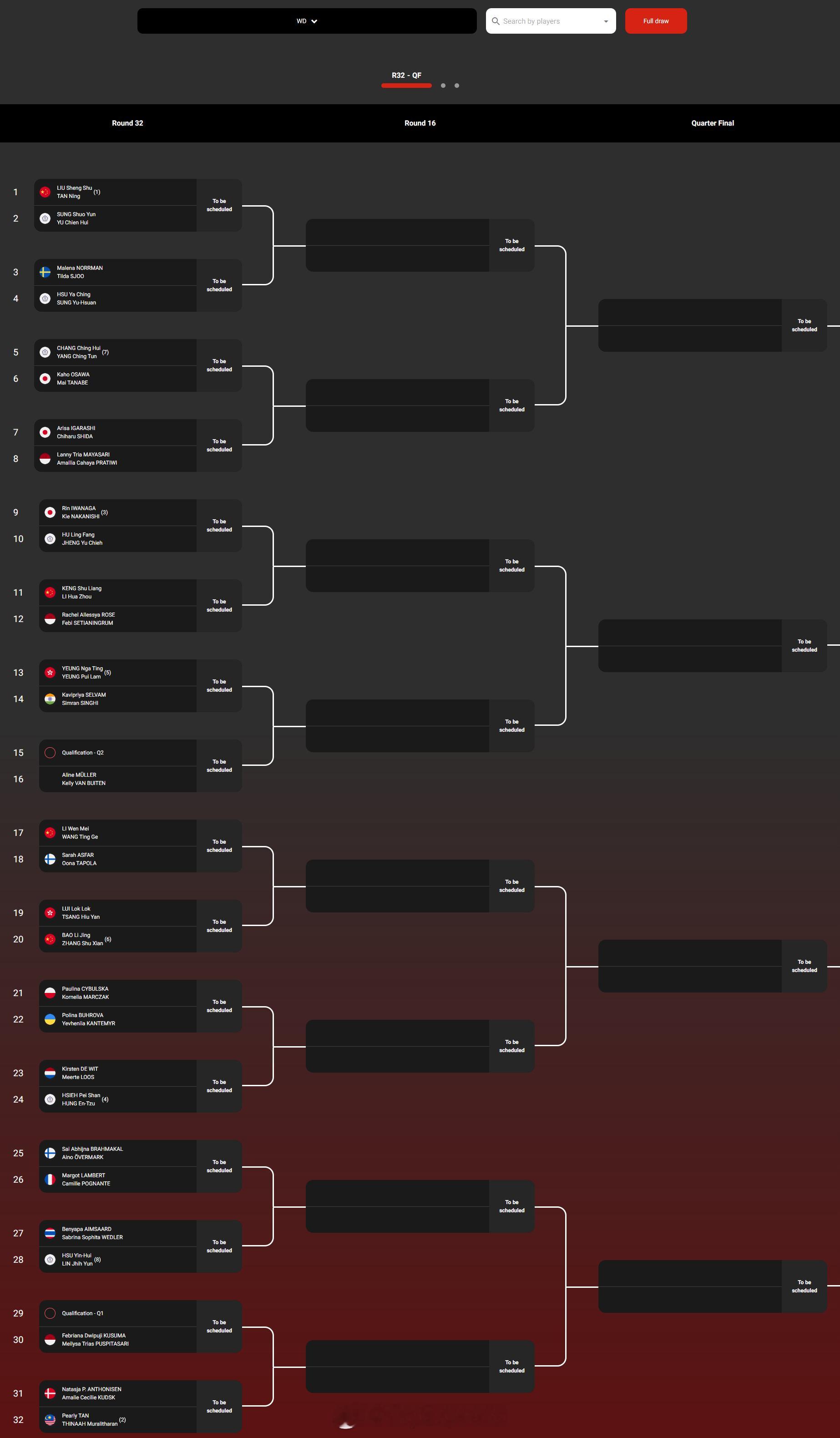 女双:刘圣书/谭宁、坑姝良/李华洲、李汶妹/王汀戈、鲍骊婧/张殊贤