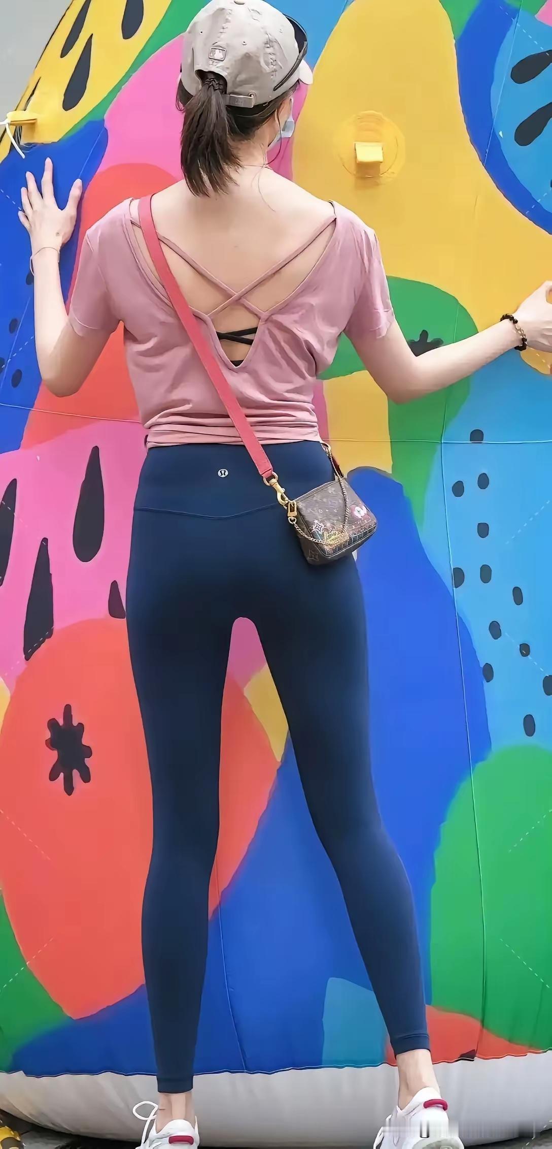 这个女孩在拍彩虹墙照片。