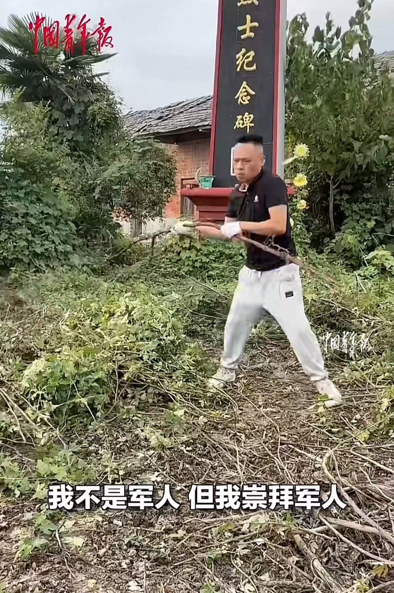 “这个大哥火到青年报!”湖北荆州,男子出差途中见一座烈士纪念碑前长满杂草,主动上前清理!男子:我不是军人,但我崇拜军人,缅怀先烈,铭记历史! 网友:很感动,但这个村的一把手应该检讨一下!