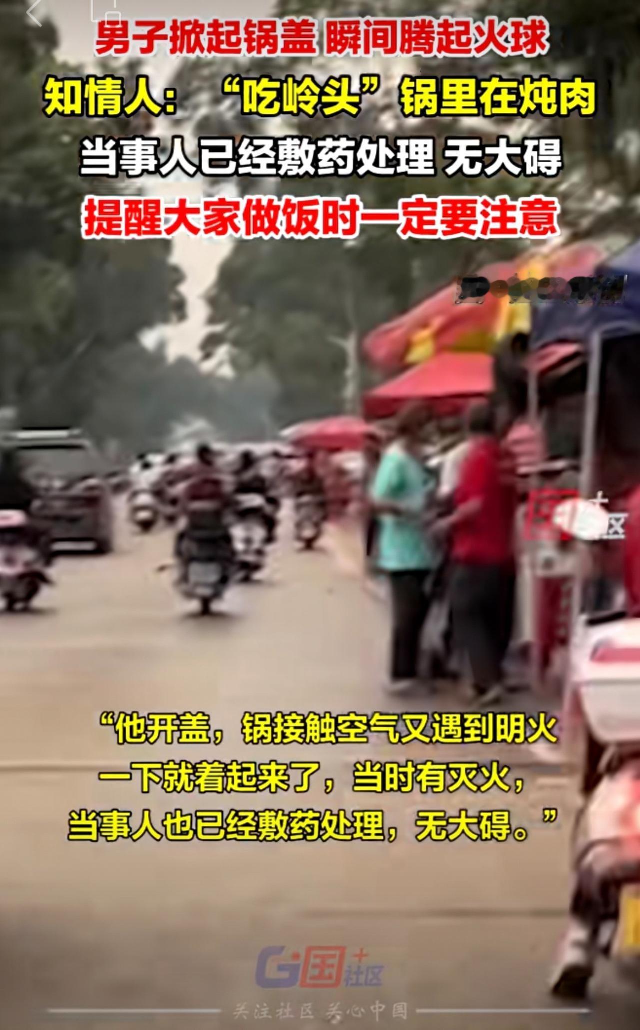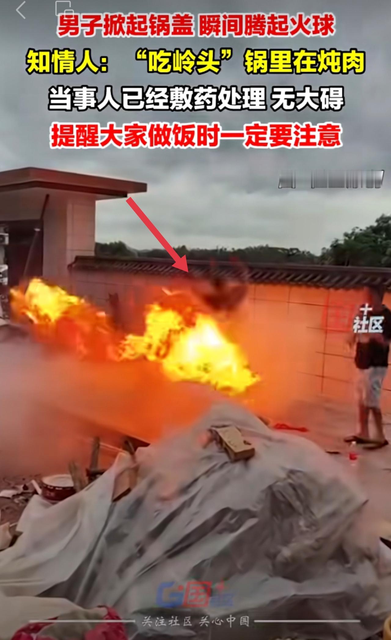 10月5日(发布时间),广西钦州。男子掀起锅盖,瞬间被火包围,腿被伤。知情人:他一开盖,锅内接触空气又遇到明火一下就着起来了。提醒大家,做饭时一定要小心操作,防止锅内起火。
