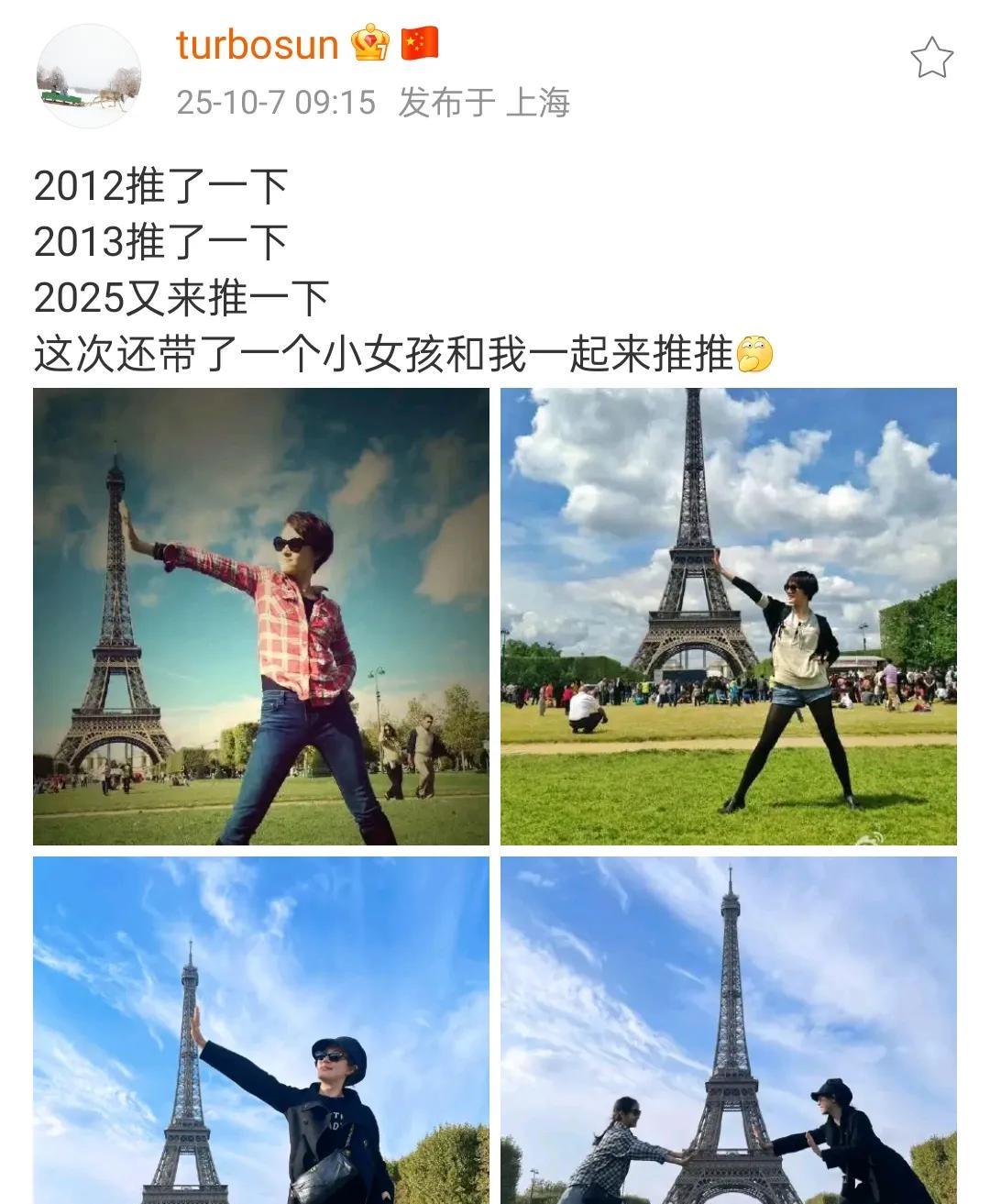 孙俪再次打卡埃菲尔铁塔,并晒出十几年前同地点旧照对比,感叹这次身边多了一个小女孩一起推塔,看到孙俪的变化真的好感慨啊! 跨越13年的推塔照,孙俪从原来古灵精怪的短发女生变成了辣妈,身材没变,气质还越来越好了[偷笑]#孙俪#