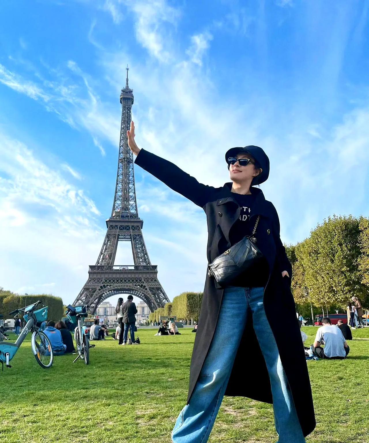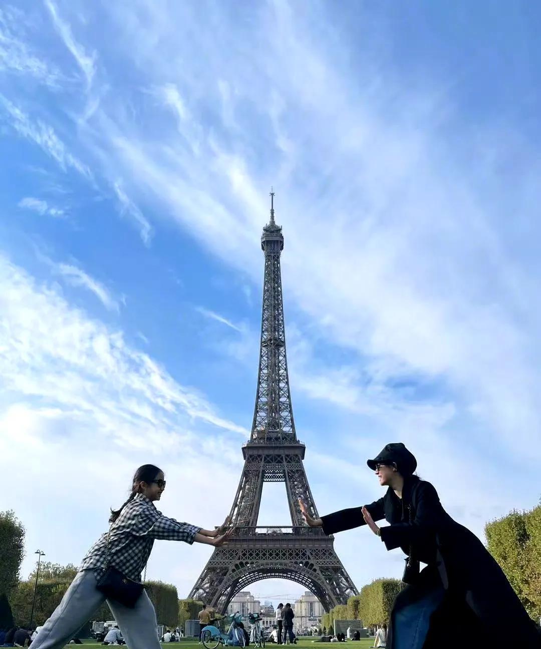 孙俪再次打卡埃菲尔铁塔,并晒出十几年前同地点旧照对比,感叹这次身边多了一个小女孩