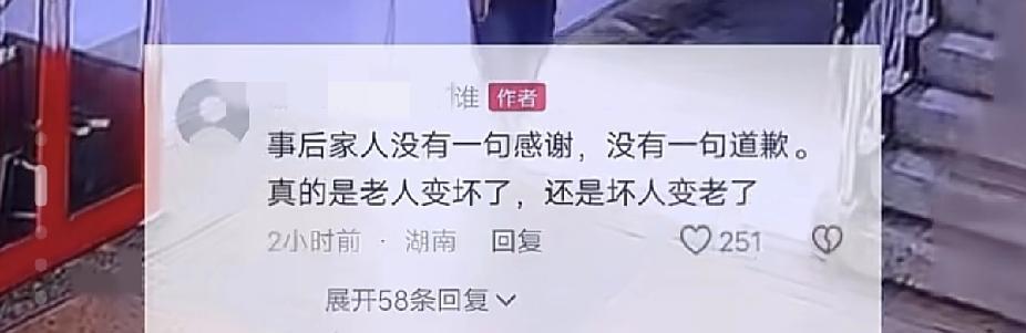 “心寒了!”9月27日报道,湖南常德,男子看到一推车老人摔倒,出于好心帮老人扶车,结果没有得到一句感谢的话,还被老人家属冤枉成肇事者,不仅索赔3万元,还要追究男子的肇事逃逸责任。男子为此精神恍惚,折腾了十几天,终于找到一个隐蔽角落的监控,证明了自己的清白。不料,老人家属看完监控后,只说了一句“对不起”就走了,还声称证据不足,不愿再追究男子的相关责任。 麻烦各位读者点一下右上角的“关注”,留下您的精彩评论与大家一同探讨!感谢您的强烈支持! 那天早上,尹先生原本只是带儿子去医院看个病,路上遇到一位推车老人摔倒,他下意识伸手扶了一把。 谁也没想到,这个简单的动作会让他陷入长达十几天的噩梦。 老人家属一口咬定他是肇事者,索赔3万元,还威胁要告他“肇事逃逸”。 尹先生说那天自己是骑摩托车去的医院,没想到老人摔倒的时候恰巧划到了自己的摩托车。 老人家属却一次借口诬陷尹先生,家属一再要求做车的痕迹对比,还一次“证据”说尹先生是肇事逃逸。 尹先生百口莫辩,只能精神恍惚地四处寻找监控。 终于在隐蔽角落的一段录像里找到了真相,画面清晰显示,他和老人擦肩而过,根本没有接触。 可当他拿着证据讨要说法时,对方只丢下一句“对不起”便转身离开。 甚至补了一句“证据不足,不追究了”,仿佛这场诬陷只是一场无关紧要的误会。 尹先生的遭遇不是孤例,类似剧情也在反复上演。 明明是好心帮忙,最后却要自证清白,甚至有人因此倾家荡产。 更讽刺的是,诬告者往往只需一句道歉就能脱身。 而像尹先生这样的救人者,却要承受精神崩溃、工作停滞的代价。 他家有患病十年的母亲,两个年幼的孩子,十几天的奔波让他连养家糊口的活儿都耽误了。 那些轻飘飘的“对不起”,真的能弥补这些损失吗? 有人说,老人可能只是记忆模糊,家属护亲心切才误判。 但监控未找到前,家属的指控可一点不含糊。 他们要求尹先生赔偿医药费,还搬出“伤残鉴定”“民事变刑事”等专业术语施压。 更让人心寒的是,他们道歉并非出于愧疚,而是因为“证据不足”。 这种态度无异于告诉公众,讹诈成本太低,成功了能捞一笔,失败了也不过道个歉。 尹先生本是好心,却没想给自己造成了这么大的麻烦。 不过“好人终归有好报!”尹先生在自己的努力下证明了清白。 如今老人一家也免不了收到舆论的谴责,毕竟这样恶意的诬陷别人,注定要收到应有的惩罚。 信息来源:江西旅游广播