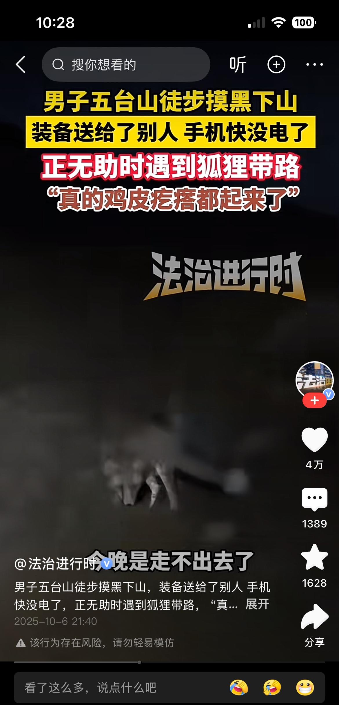 网友称夜晚被困五台山遇狐狸引路,“因好奇跟着走了10分钟,到了终点附近”;专家:可能碰巧同路,狐狸回头是讨食或防备 国庆假期,陈先生10月2日从鸿门岩出发徒步五台山,计划10月3日返回原点,全程约38公里。可到了3日晚上,充电宝故障,手机快关机了,陈先生被困在山里。就在他着急担心的时候,一只小狐狸出现了,他好奇地跟着狐狸走了近10分钟,没想到竟然到了终点附近。 这事儿在网上传开后,大家议论纷纷。好多网友觉得这是“狐仙报恩”,五台山本来就挺有灵性的,觉得这狐狸肯定有特别的本事。但也有网友觉得,这就是个巧合罢了。 专家出来说话了,广东省科学院动物研究所的胡慧建研究员讲啊,狐狸都有自己固定的活动范围。陈先生碰到的这只狐狸,可能就是正好要走那条路,跟陈先生要去的方向一样,不是专门来给陈先生引路的。那狐狸为啥老回头呢?专家说,要么就是想让陈先生给点吃的,要么就是狐狸天生对人有防备心,回头看看陈先生有没有干啥危险的事儿。 我觉得吧,专家的话有道理,从科学角度讲,确实很可能就是这么回事儿。动物的行为很多时候就是本能,狐狸按照自己的习惯路线走,被陈先生当成了救星。不过呢,网友们愿意相信“狐仙报恩”这种说法,也没啥错。大家都喜欢这种有灵性、有神秘色彩的故事,这也给陈先生的经历添了不少浪漫的感觉。这事儿也提醒咱们,出去玩儿可得准备充分了,别像陈先生似的,差点出危险。要是真被困住了,可不是每次都有狐狸来“帮忙”的。 各位读者你们怎么看?欢迎在评论区讨论。