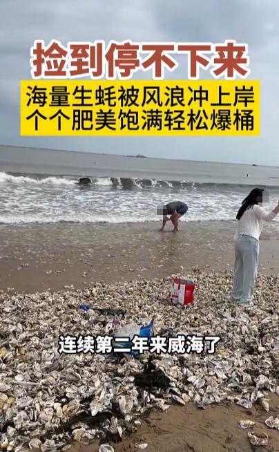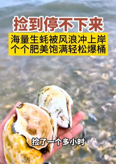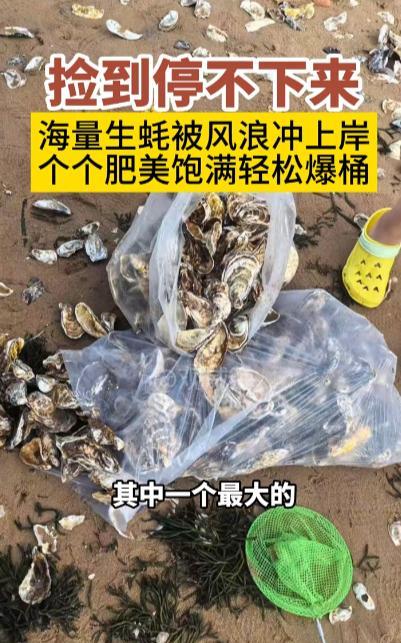 “这简直是捡钱啊!”10月4日,山东威海,一女子发现海边大量生蚝被冲上岸,赶忙动员老公和宠物狗帮忙一起捡,两人一狗合力捡了20多斤肥美的生蚝,最大的一只有手掌那么大!网友:发个定位,我马上来! 每当潮汐褪去,海滩上总会遗留下许多大海的馈赠,各种小海鲜被浪卷到沙滩上,赶海的人提着小桶挨个去捡,往往能满载而归。 一女子和老公带着宠物狗来威海旅居,这天早上天气晴朗,他们一家来到海边散步,女子忽然发现沙滩上有大量生蚝,个个都肥美饱满,数量多到摞成了一座座“生蚝山”,看起来十分壮观。 面对眼前这一幕,女子激动不已,赶忙找来几个袋子,动员老公和狗狗帮忙一起捡生蚝,在两人一狗的努力之下,一个小时的时间几个塑料袋就都被生蚝塞满,女子提回住处一称,竟然有20多斤,最大的一个足足有手掌那么大! 出现这么多生蚝的原因其实是和台风有一定关系,受到台风外围环流的影响,当天的风吹起了强浪,将养殖区的生蚝卷到了岸上,女子一家散步时刚好遇到退潮,于是就“大丰收”了! 不少网友羡慕极了,询问女子捡生蚝的位置,都表示自己也要去,遍地生蚝的情况真是可遇不可求,这跟捡钱有啥区别! 信息来源:《威海海边生蚝“自动送上门”,个个肥美爆汁!随手一捡就爆桶,感谢大海的馈赠!》观威海