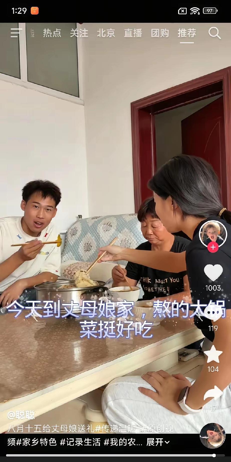 终于知道为啥八月十五聪聪去丈母娘家丈母娘给做大锅菜了?按说聪聪是新女婿第一次走亲戚不应该给做大锅菜啊,怎么着也得弄几个菜吧,但是事实却不是这样的,还有粉丝说那是因为大妮和常输太抠门了,聪聪去丈母娘家拿的礼物太少了,所以丈母娘才将计就计,这大妮和常输也是,一百多万的粉丝博主,走亲家竟然拿冻肉,买的礼品也太少了,怎么说媳妇是第一年中秋节回娘家怎么也得买一车礼品吧,结果大妮就拿了一块冻肉,两三盒礼品,这让粉丝们看着都着急啊,大妮和常输就聪聪这一个儿子和儿媳,为啥对媳妇这么不尊重啊,还有粉丝说这在农村已经不算拿的少了,其实农村和城市是有区别的,只要聪聪媳妇不嫌少,其他人是不是都是多操心了。#烤肉聪聪# #傻白甜丈母娘# #00后丈母娘# #升聪宴#
