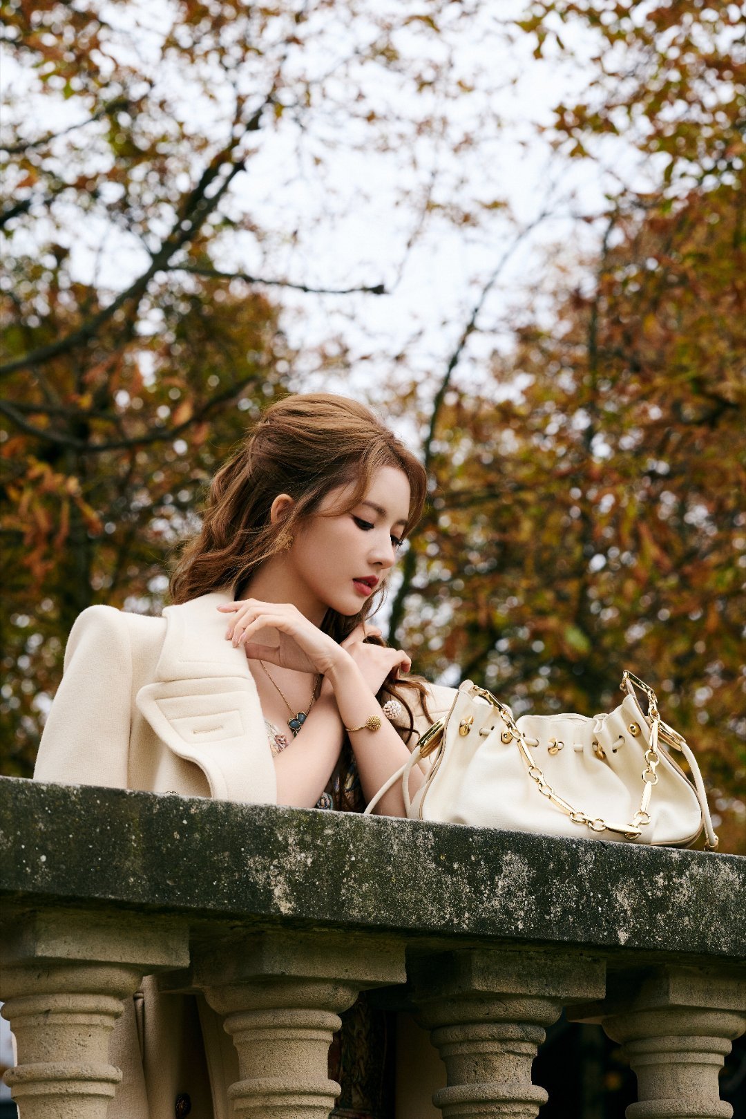 刘些宁秋日油画里走出的美人刘些宁在巴黎时装周美出新高度!复古印花长裙配秋日落叶,